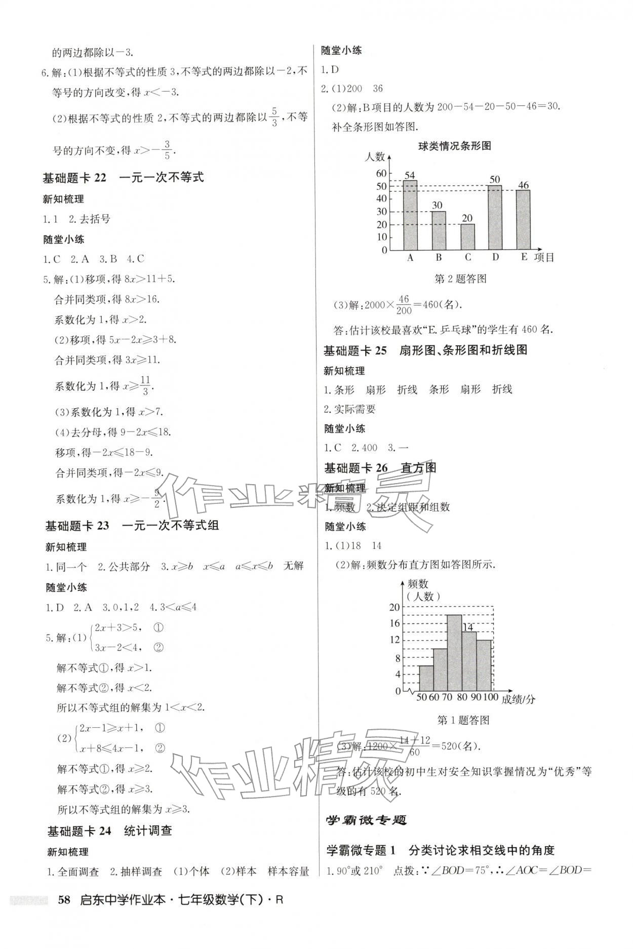 2026年启东中学作业本七年级数学下册人教版第58页
