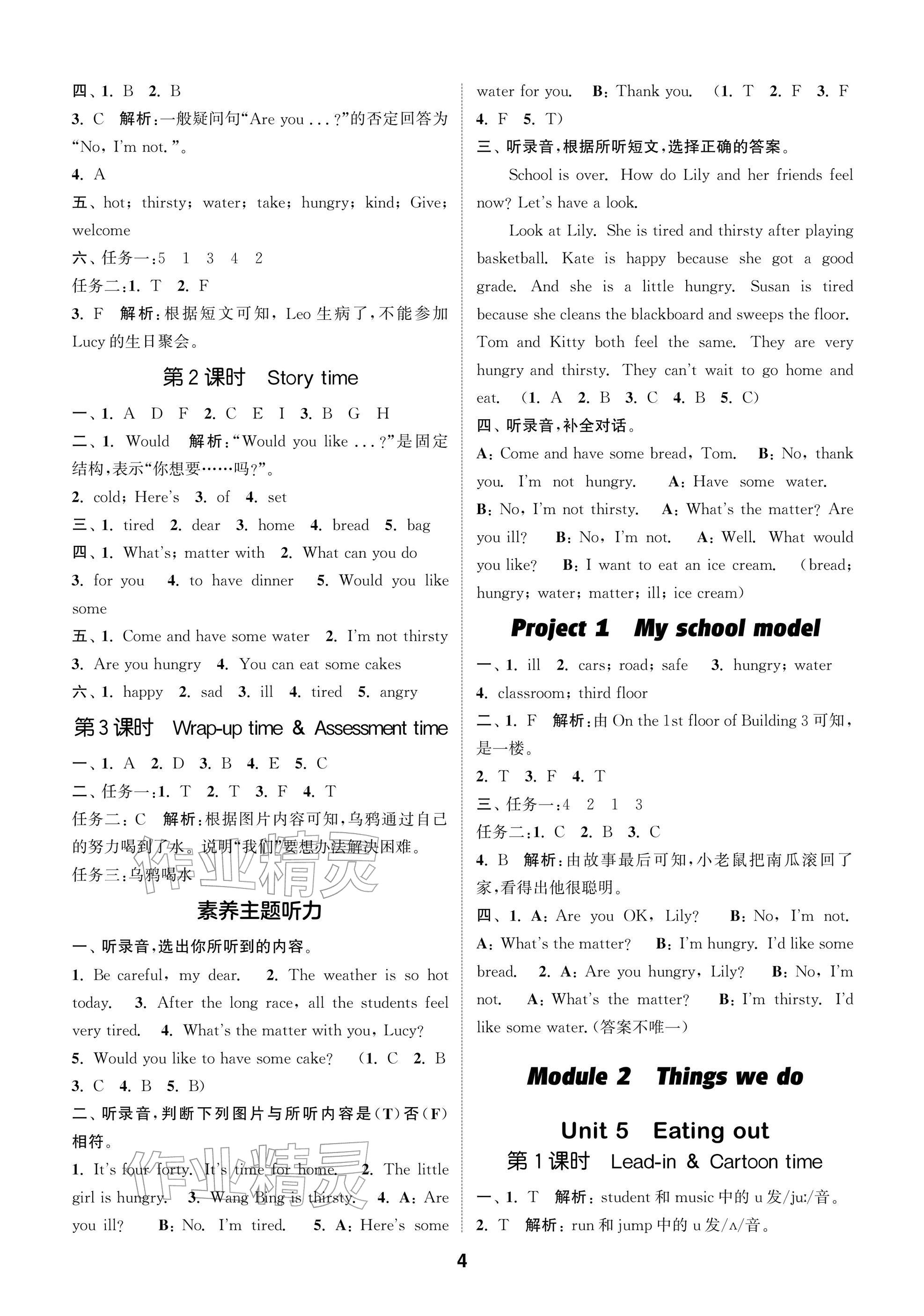 2026年课时作业本阅读与闯关四年级英语下册译林版参考答案第4页