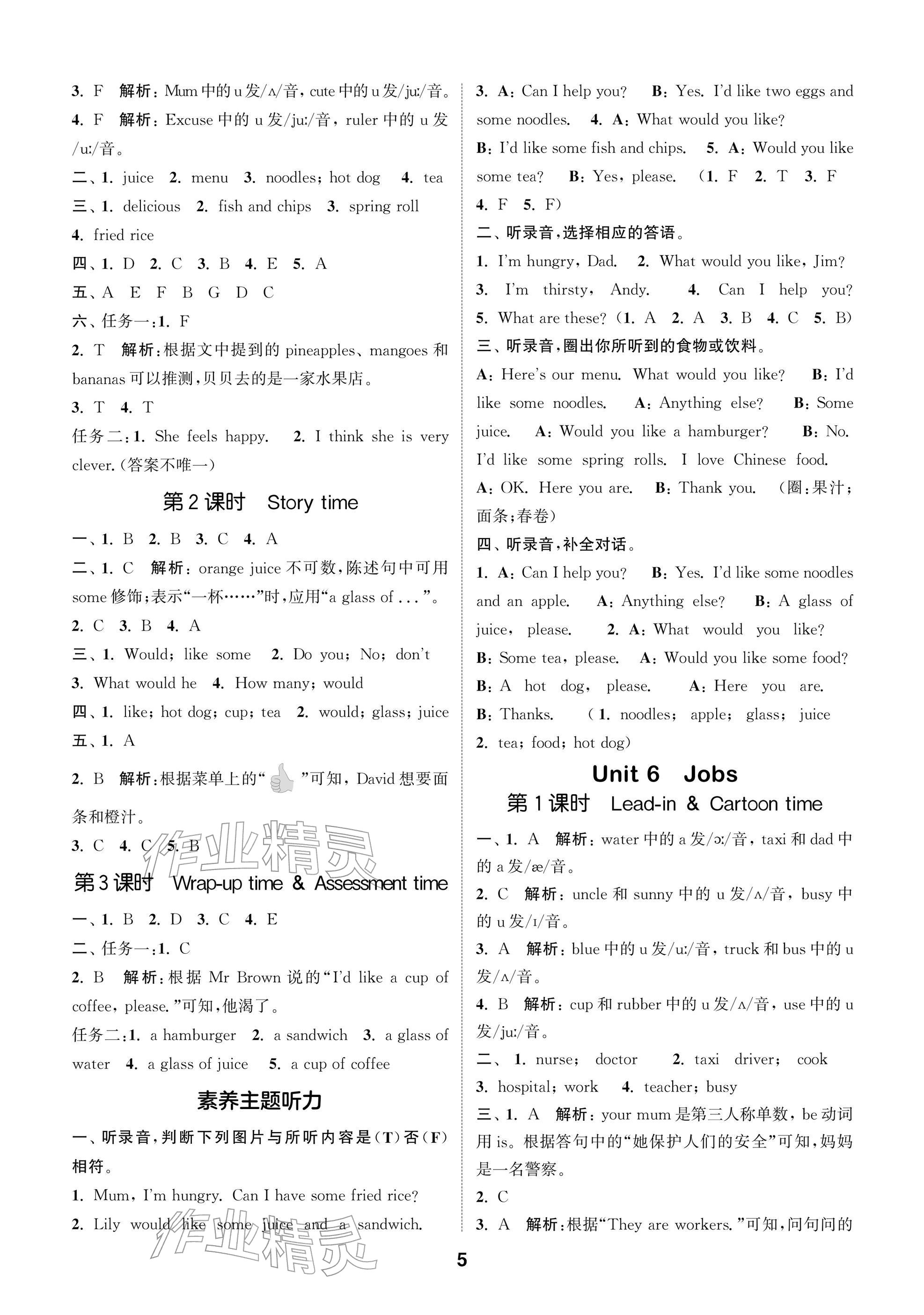 2026年课时作业本阅读与闯关四年级英语下册译林版参考答案第5页