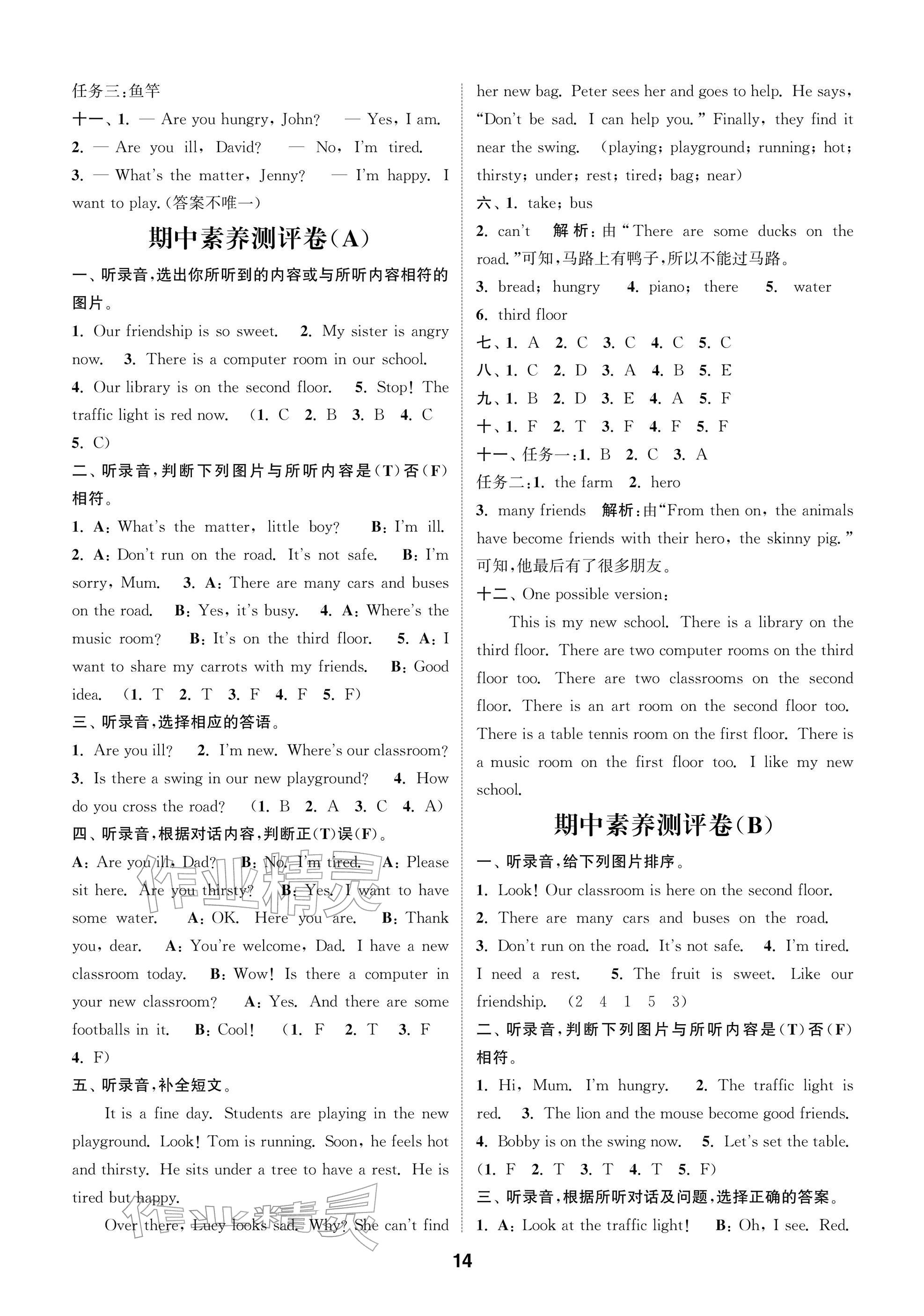 2026年课时作业本阅读与闯关四年级英语下册译林版参考答案第14页