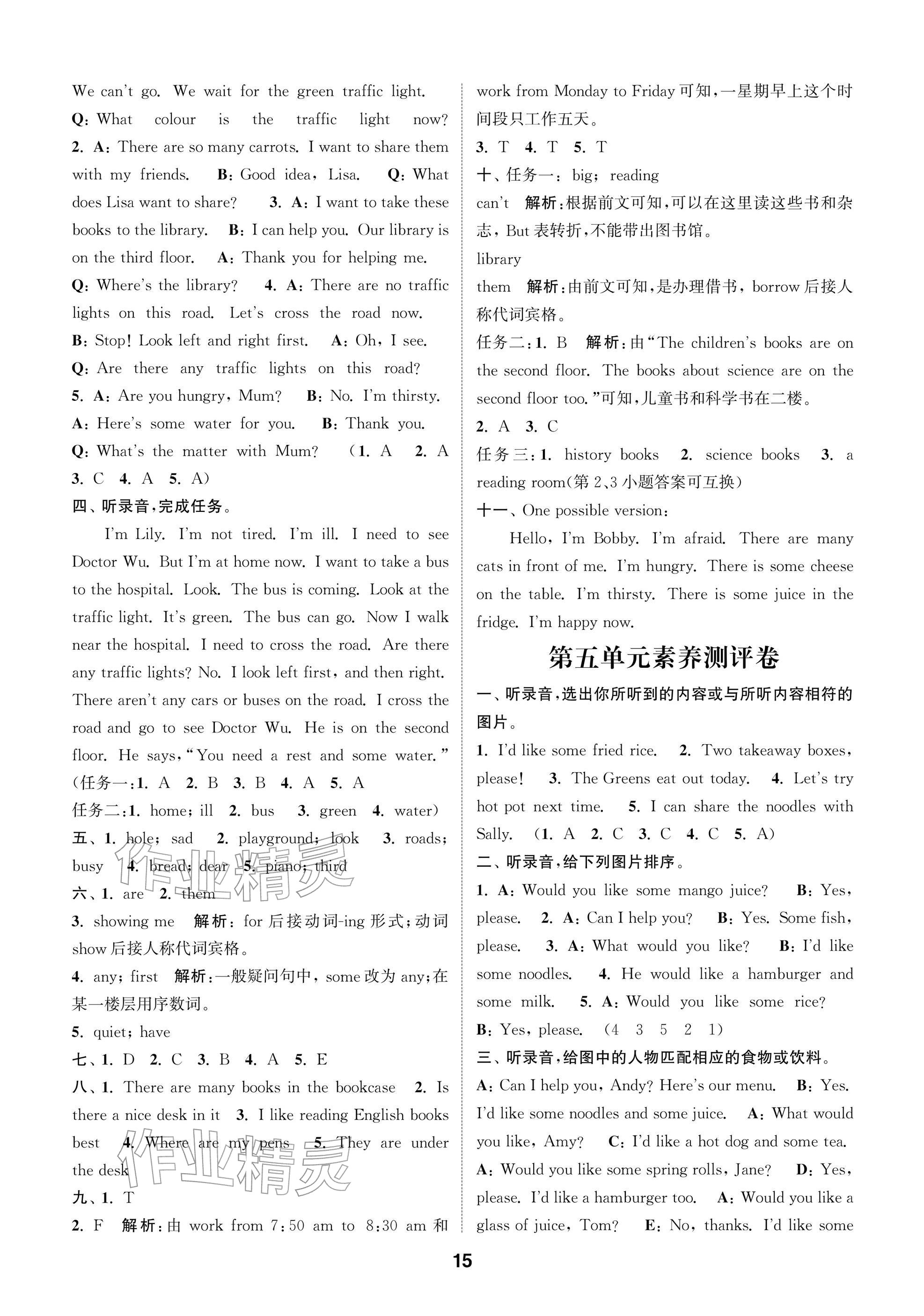 2026年课时作业本阅读与闯关四年级英语下册译林版参考答案第15页