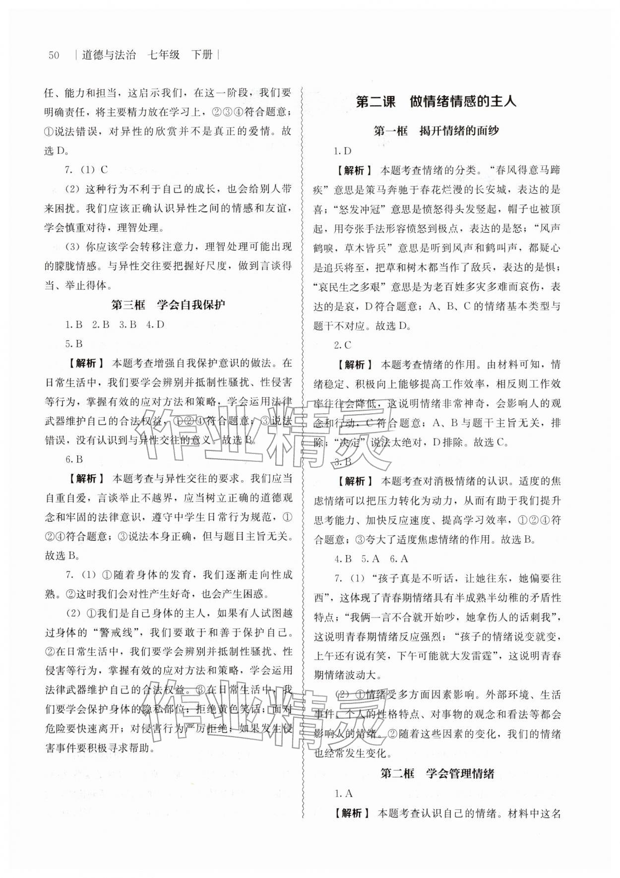 2026年补充习题江苏人民教育出版社七年级道德与法治下册人教版第2页