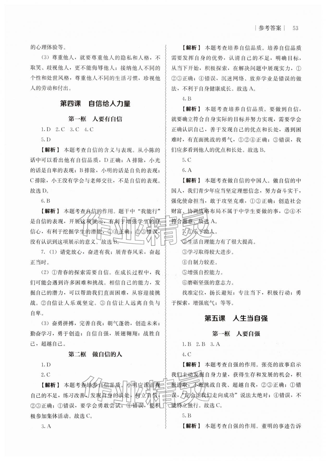 2026年补充习题江苏人民教育出版社七年级道德与法治下册人教版第5页