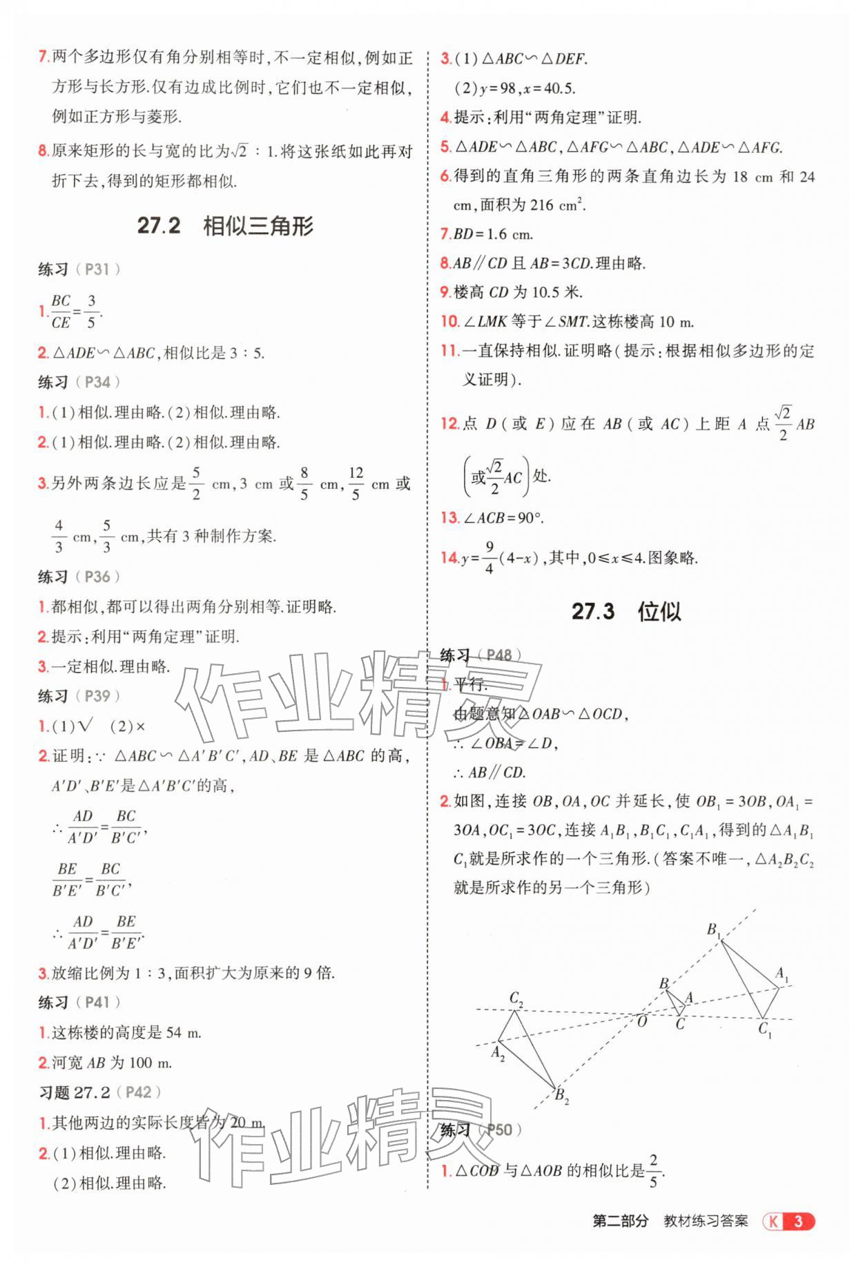 2026年教材课本九年级数学下册人教版参考答案第3页