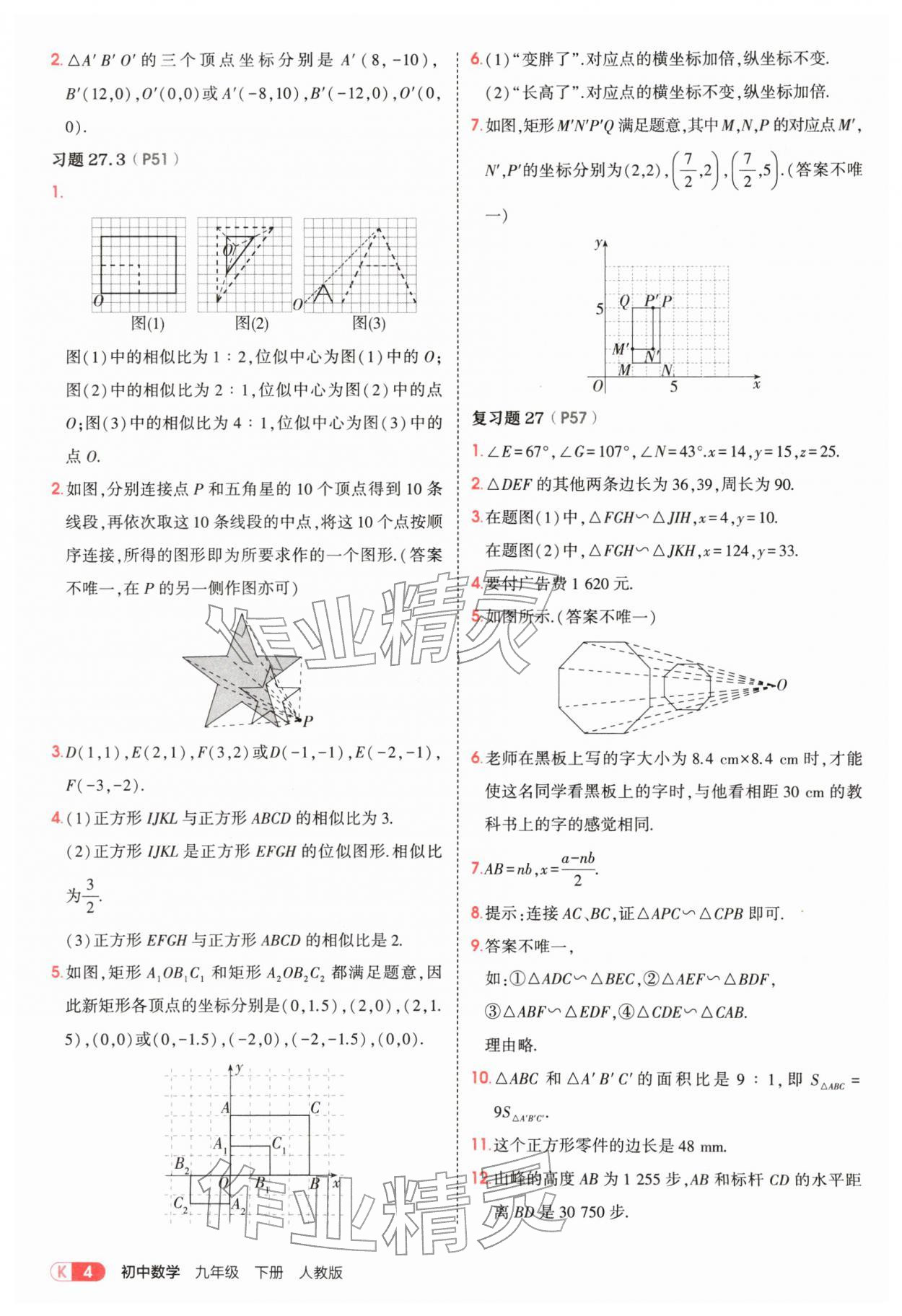 2026年教材课本九年级数学下册人教版参考答案第4页