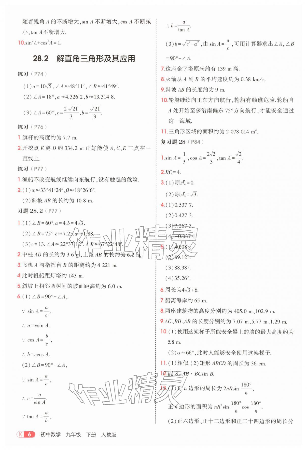 2026年教材课本九年级数学下册人教版参考答案第6页