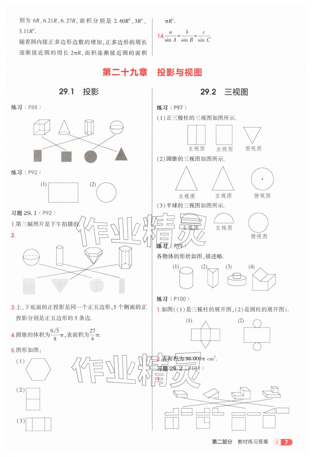 2026年教材课本九年级数学下册人教版参考答案第7页