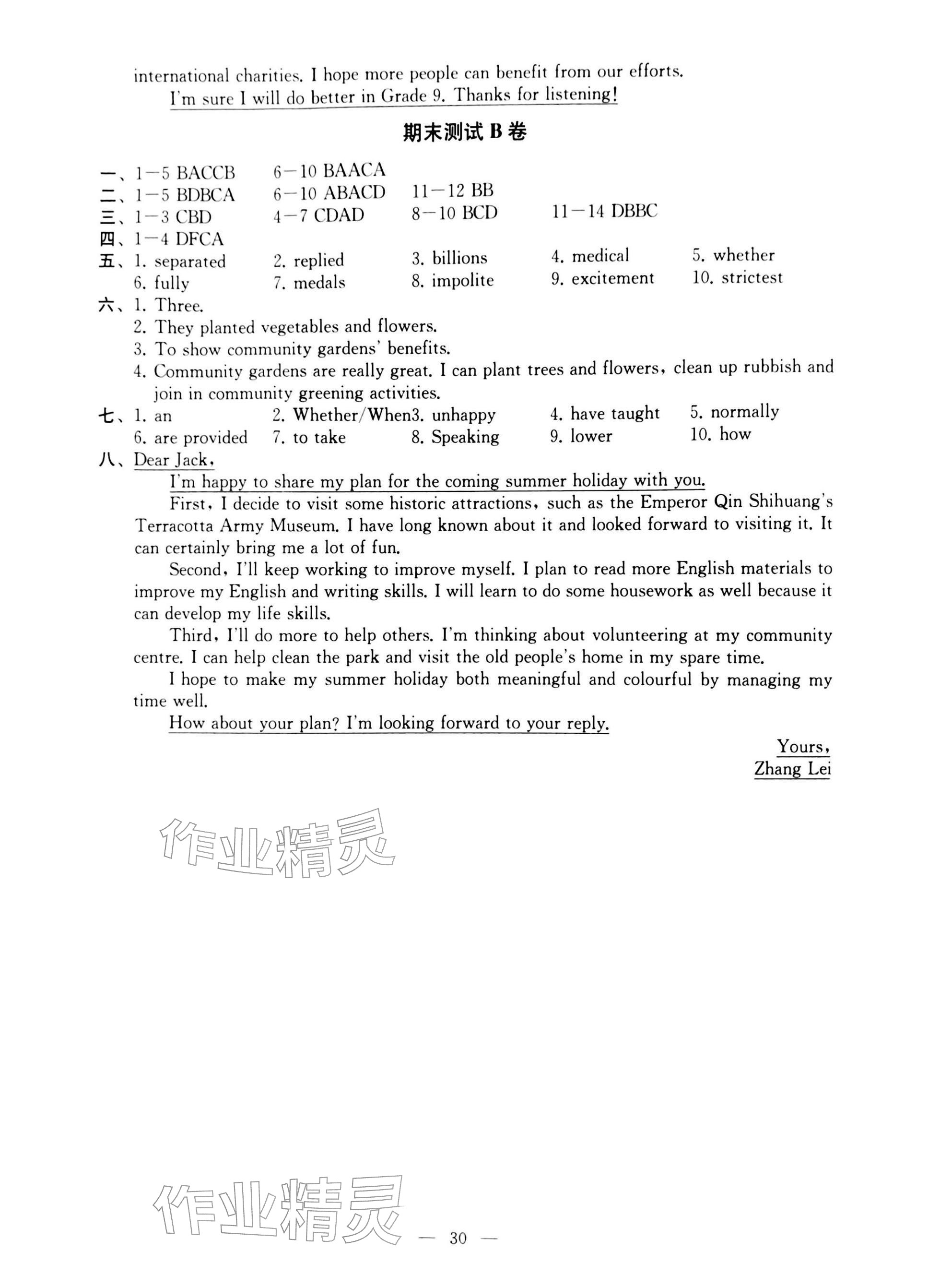 2026年创新优化学案八年级英语下册译林版参考答案第30页