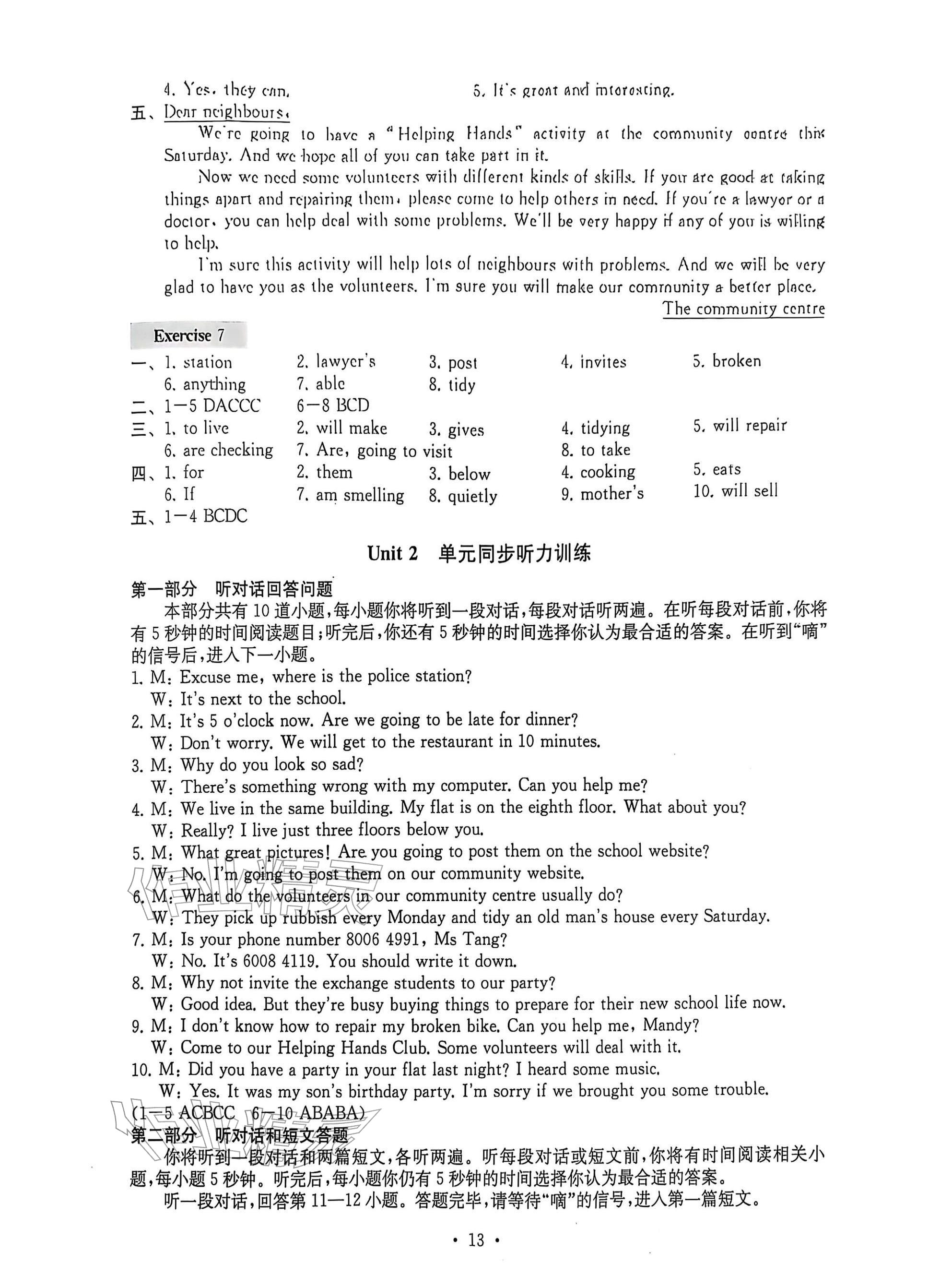 2026年综合素质随堂反馈七年级英语下册译林版常州专版参考答案第13页