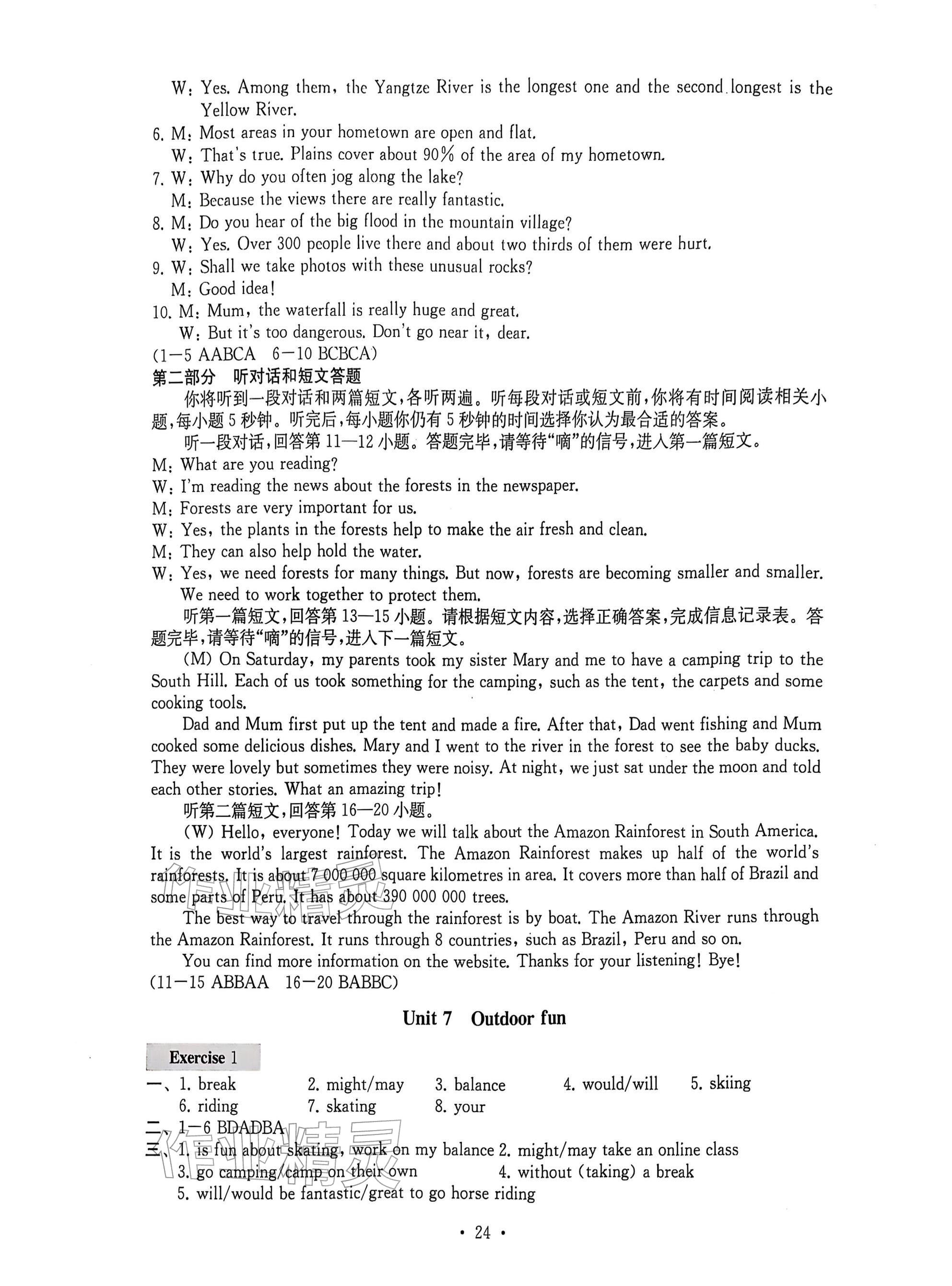 2026年综合素质随堂反馈七年级英语下册译林版常州专版参考答案第24页