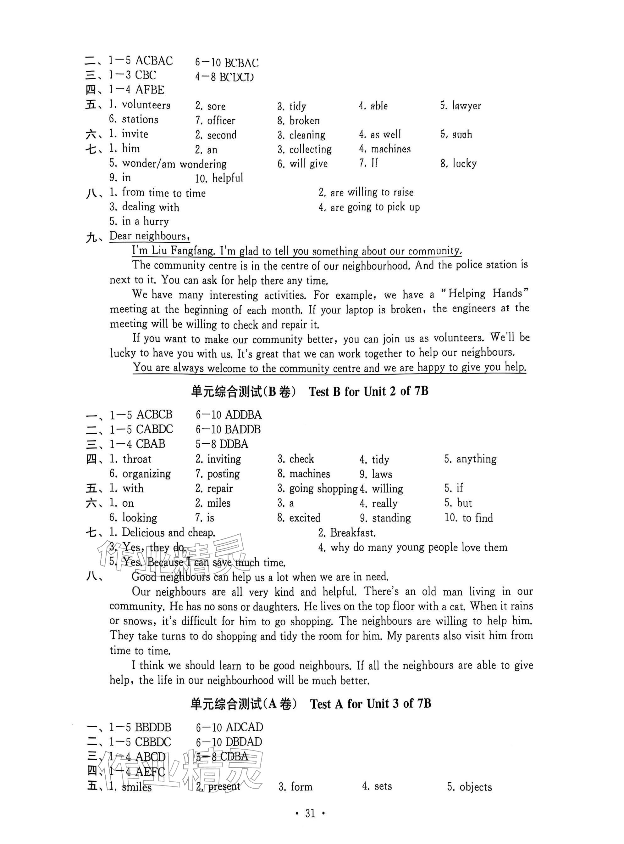 2026年综合素质随堂反馈七年级英语下册译林版常州专版参考答案第31页