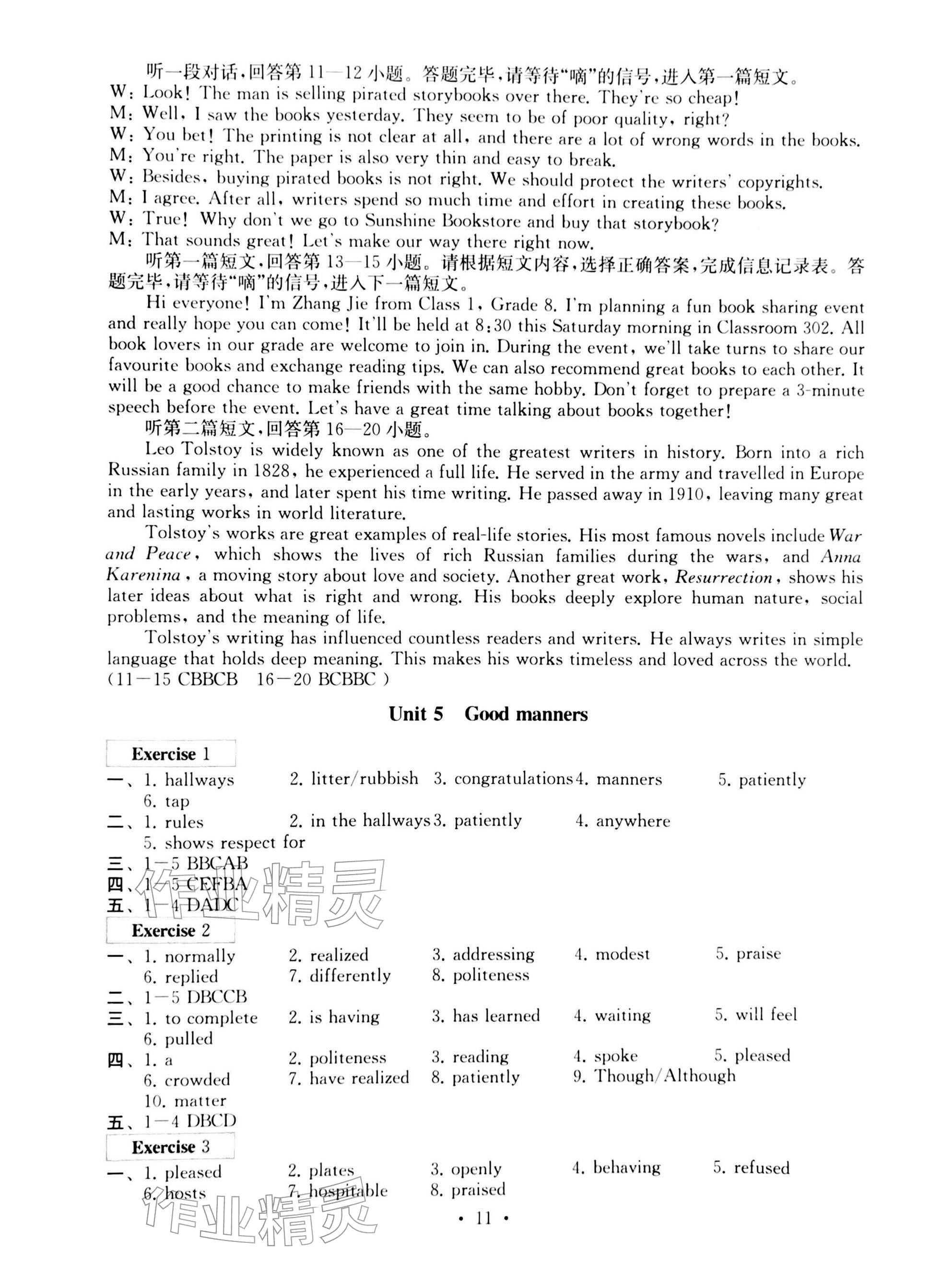 2026年综合素质随堂反馈八年级英语下册译林版常州专版参考答案第11页