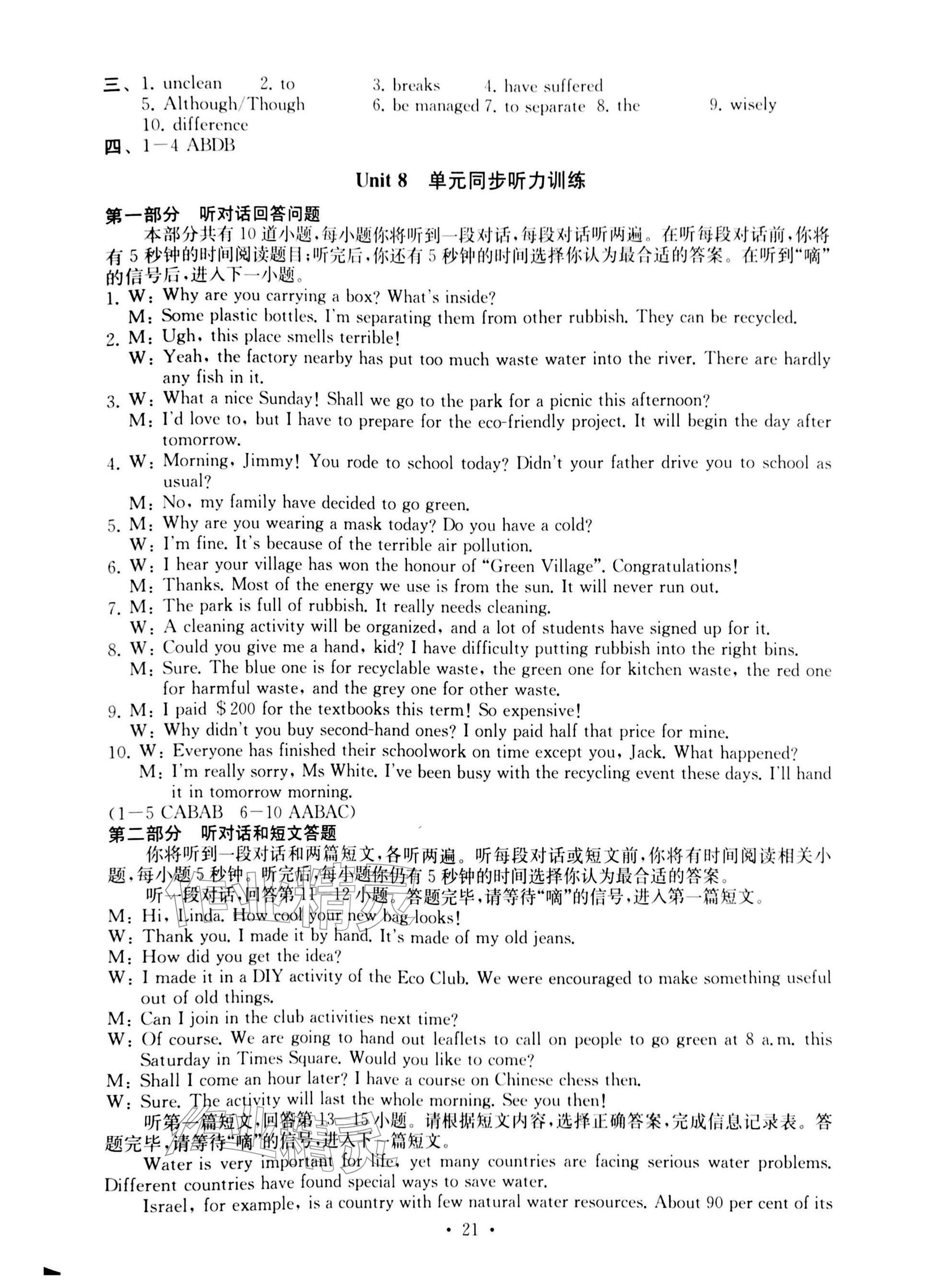 2026年综合素质随堂反馈八年级英语下册译林版常州专版参考答案第21页