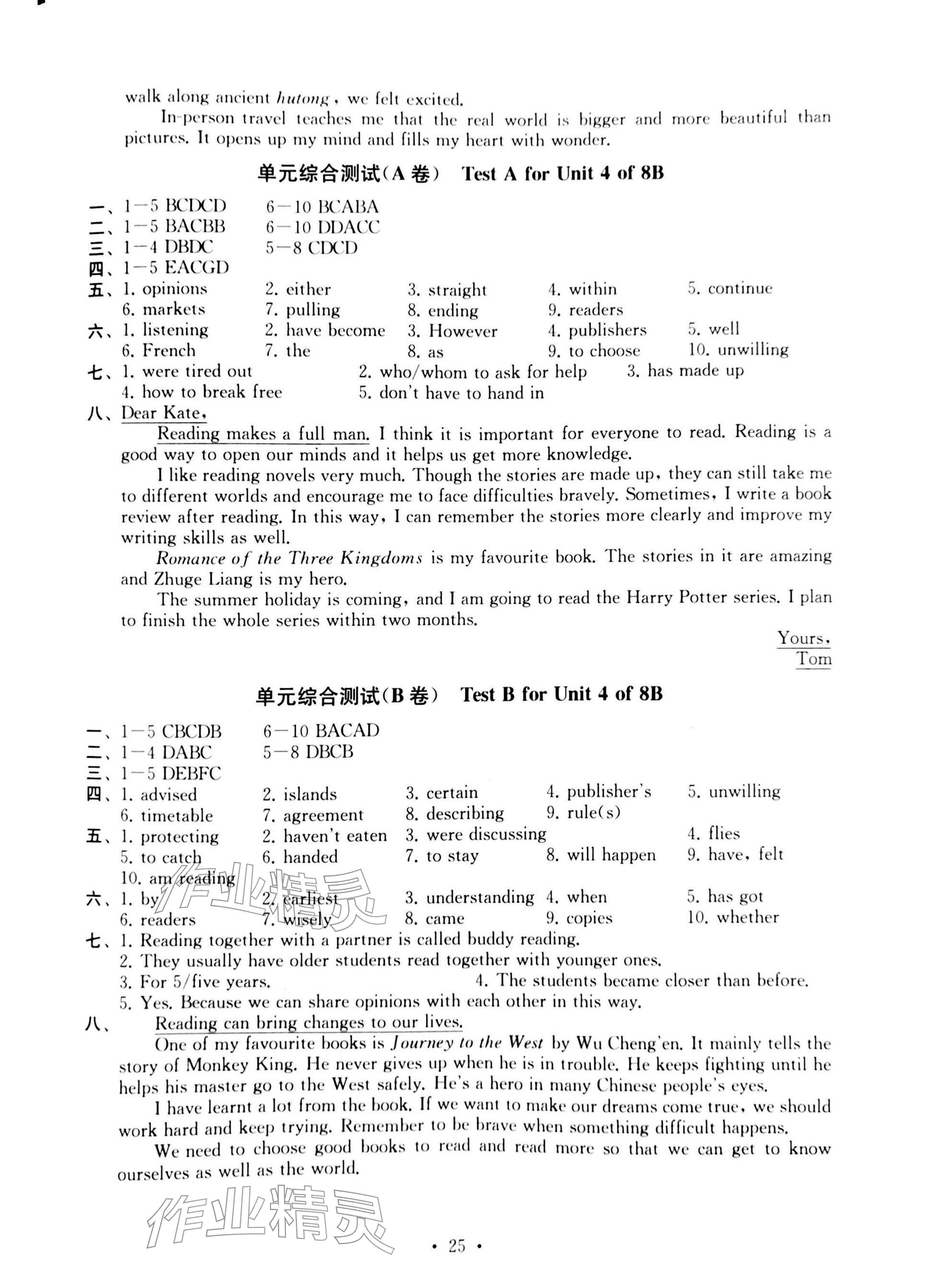2026年综合素质随堂反馈八年级英语下册译林版常州专版参考答案第25页