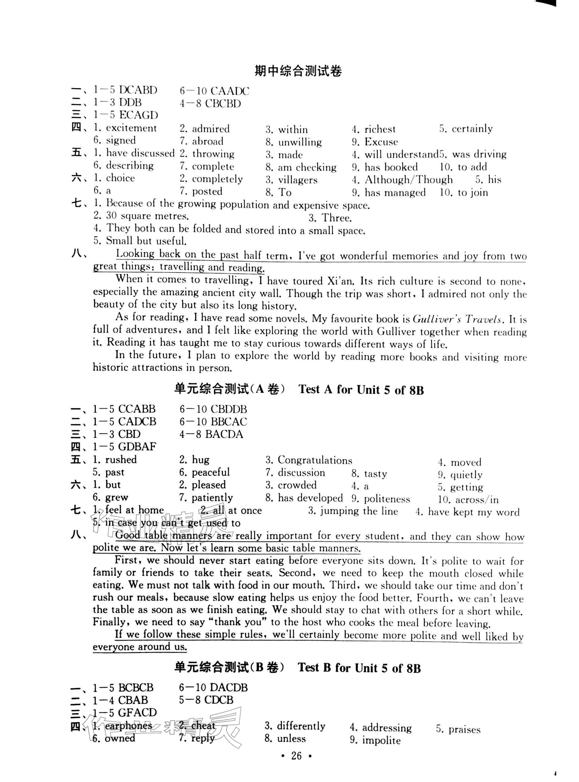 2026年综合素质随堂反馈八年级英语下册译林版常州专版参考答案第26页