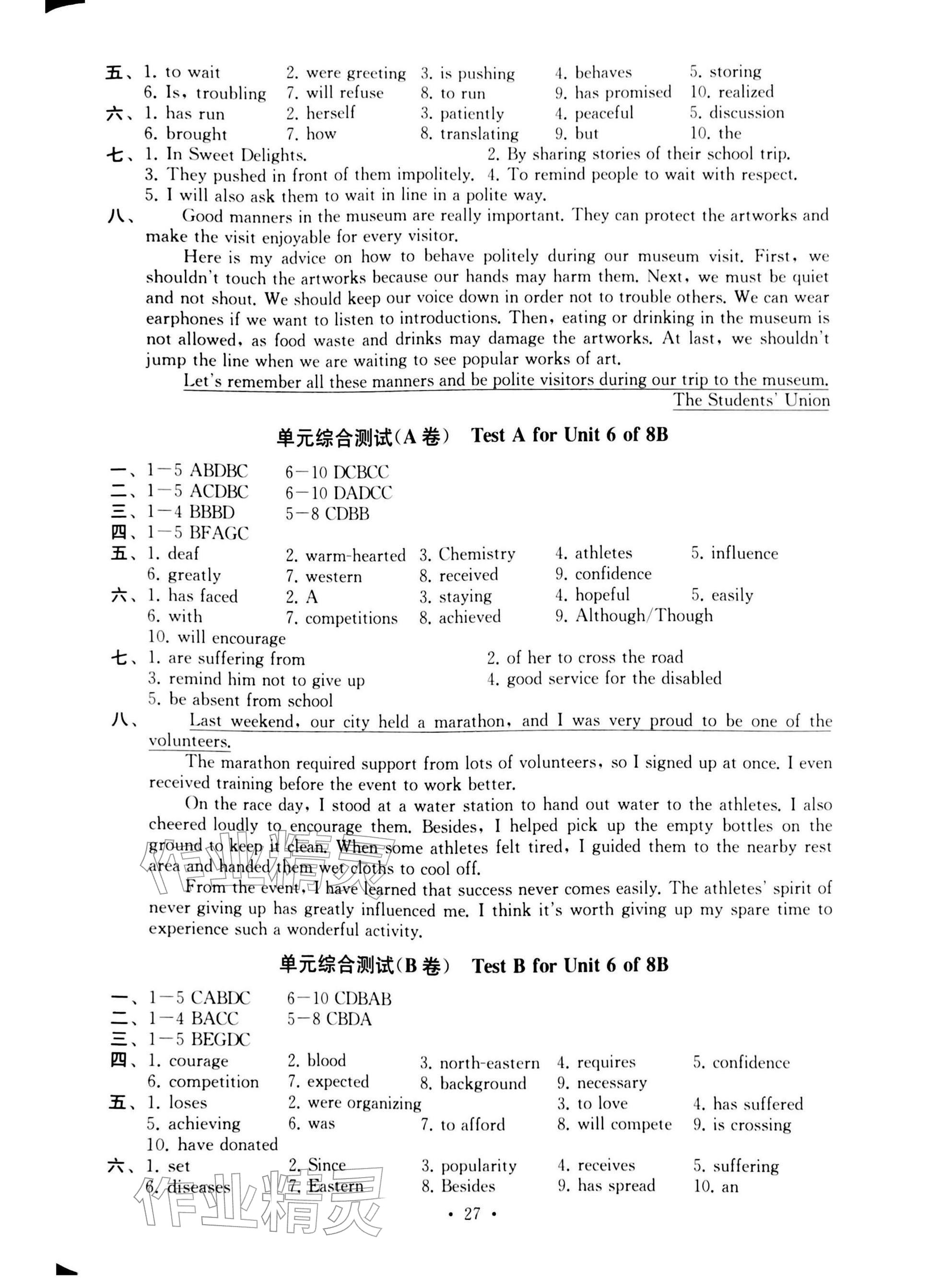 2026年综合素质随堂反馈八年级英语下册译林版常州专版参考答案第27页