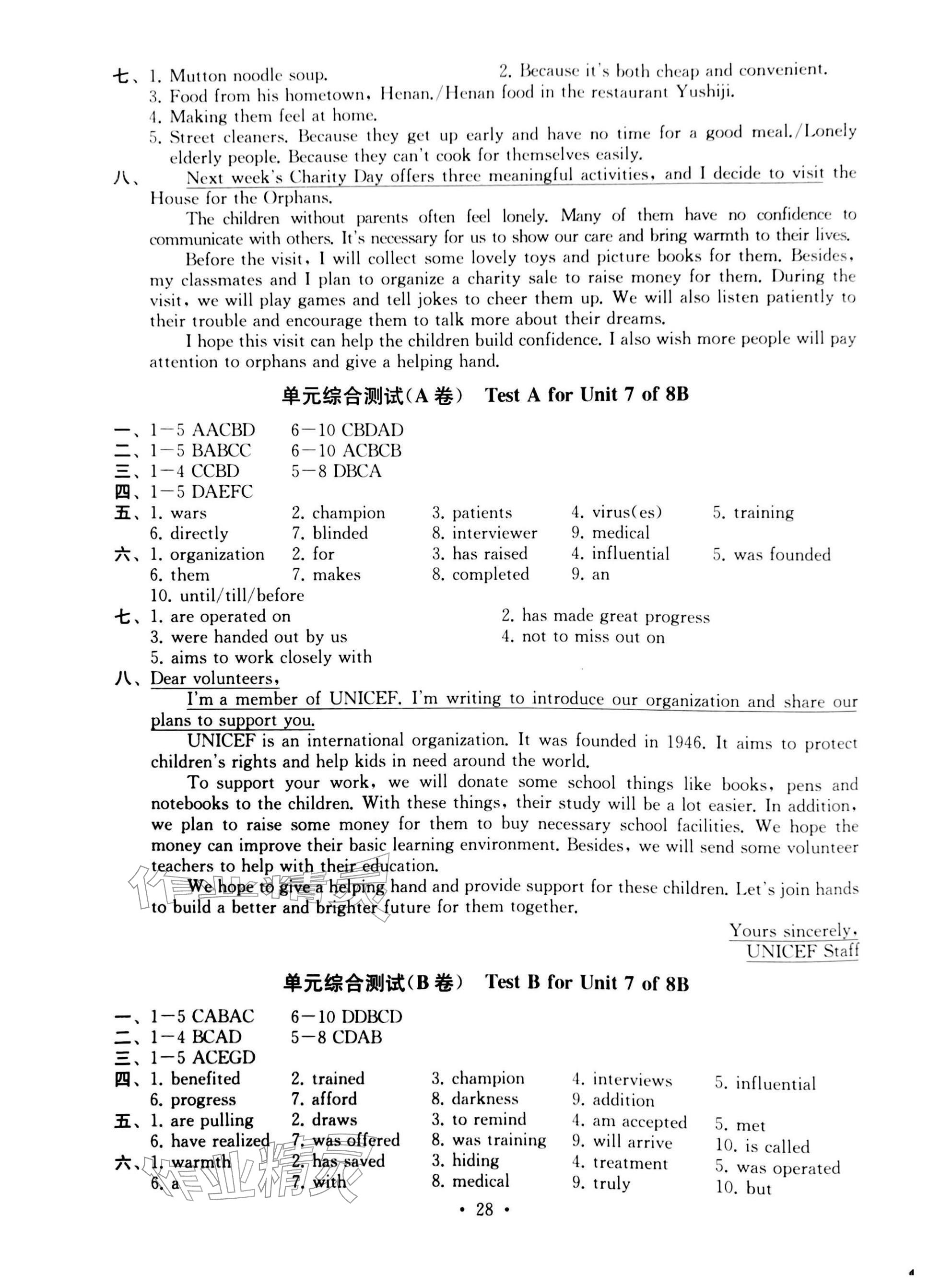 2026年综合素质随堂反馈八年级英语下册译林版常州专版参考答案第28页