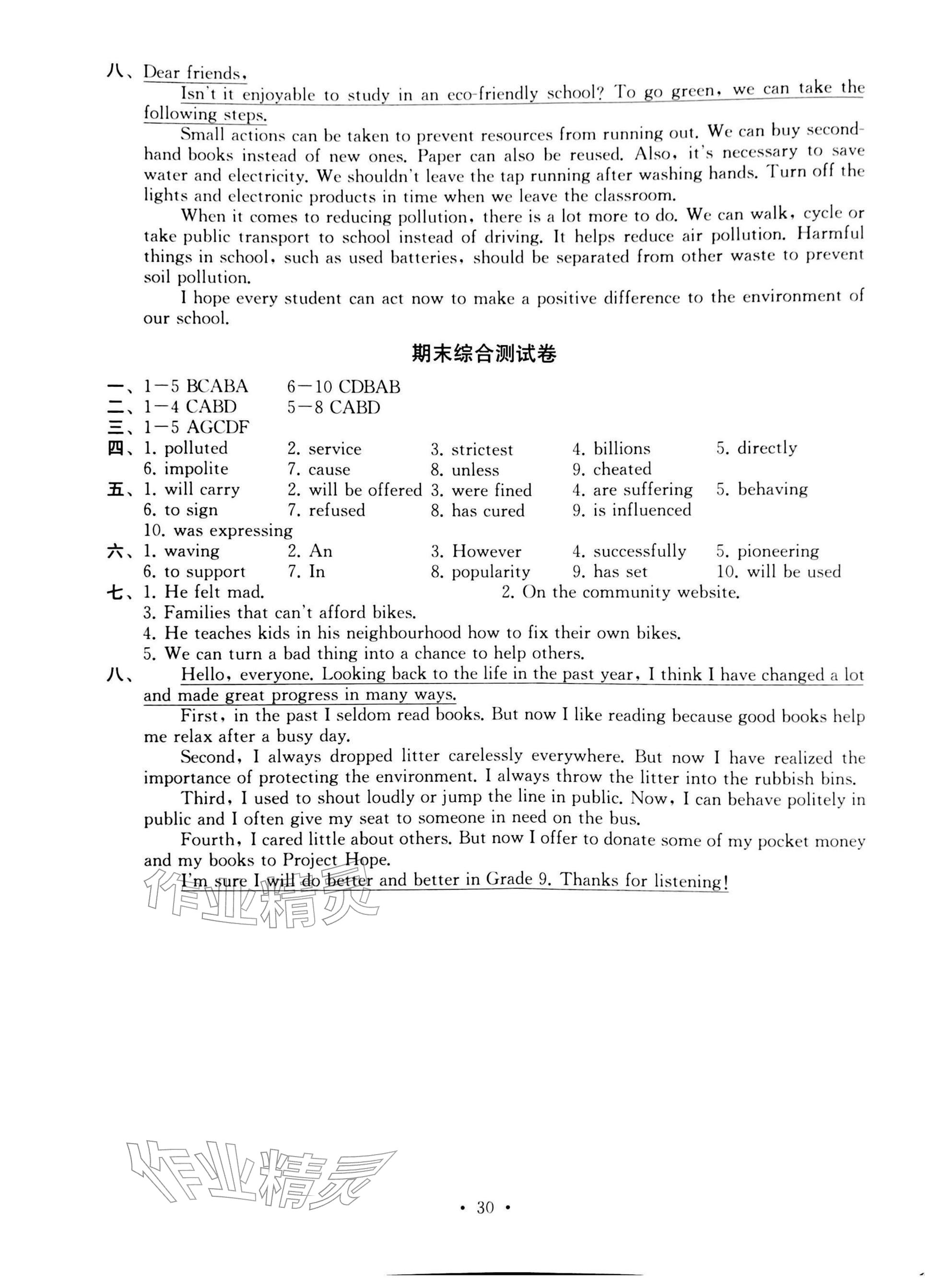 2026年综合素质随堂反馈八年级英语下册译林版常州专版参考答案第30页