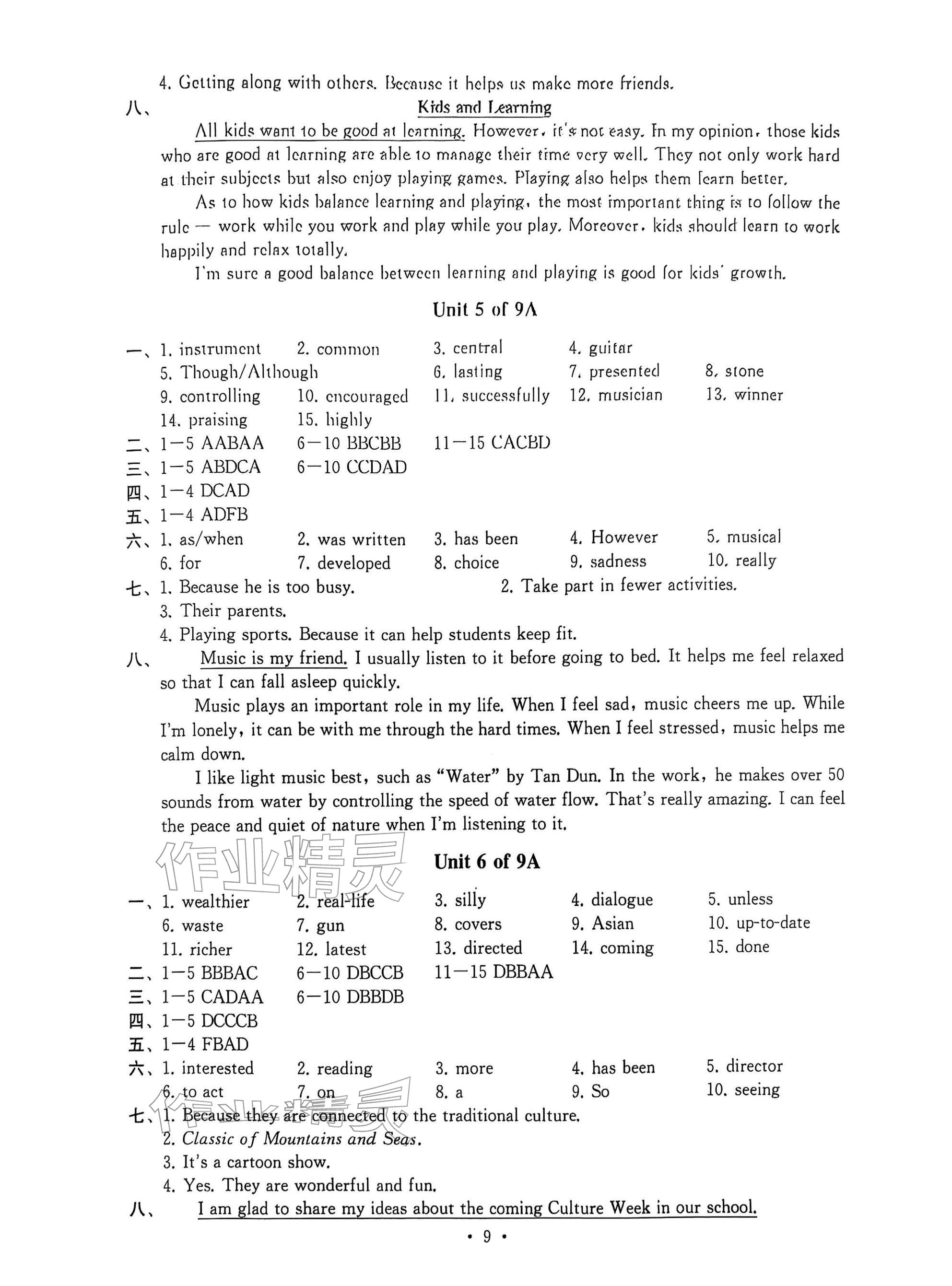 2026年综合素质随堂反馈九年级英语下册译林版常州专版参考答案第9页