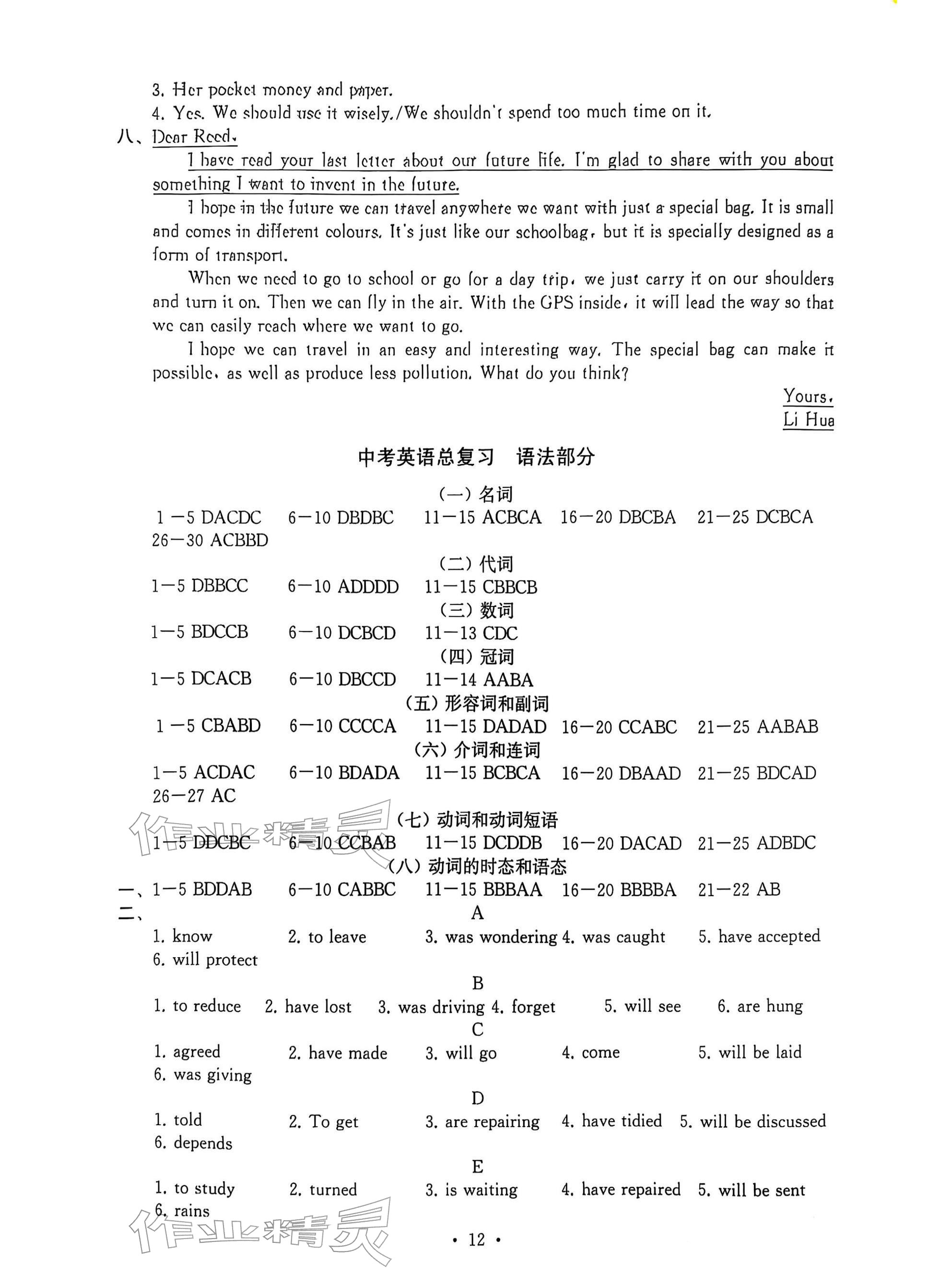 2026年综合素质随堂反馈九年级英语下册译林版常州专版参考答案第12页