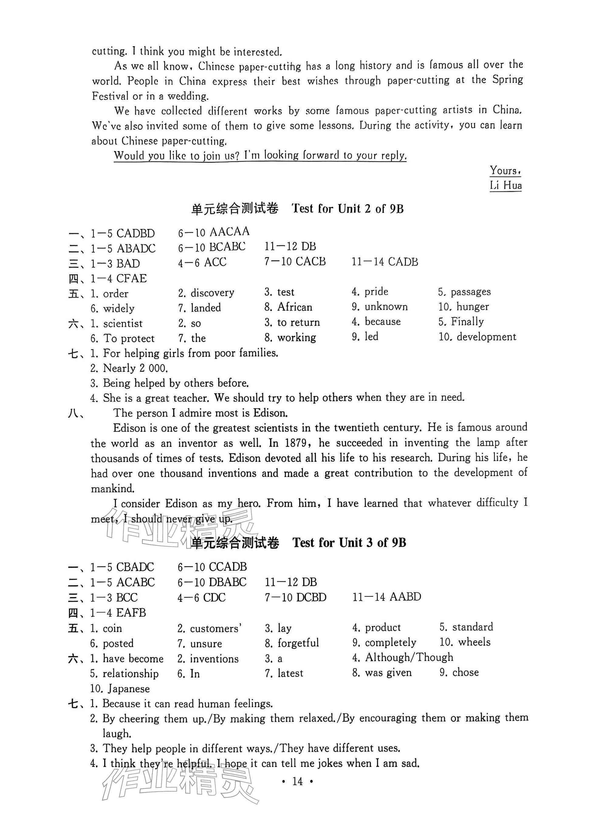 2026年综合素质随堂反馈九年级英语下册译林版常州专版参考答案第14页