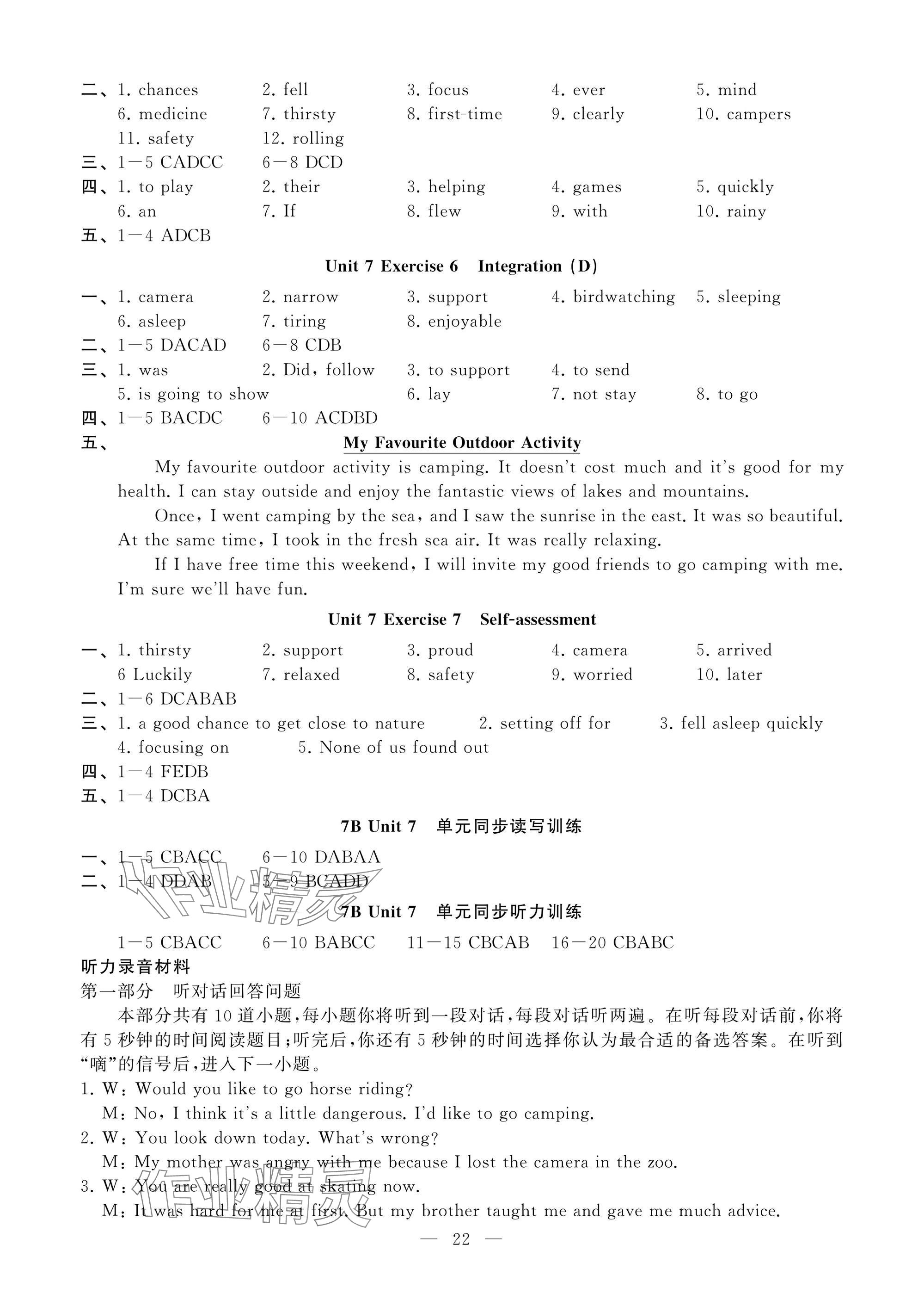 2026年创新优化学案七年级英语下册译林版参考答案第22页