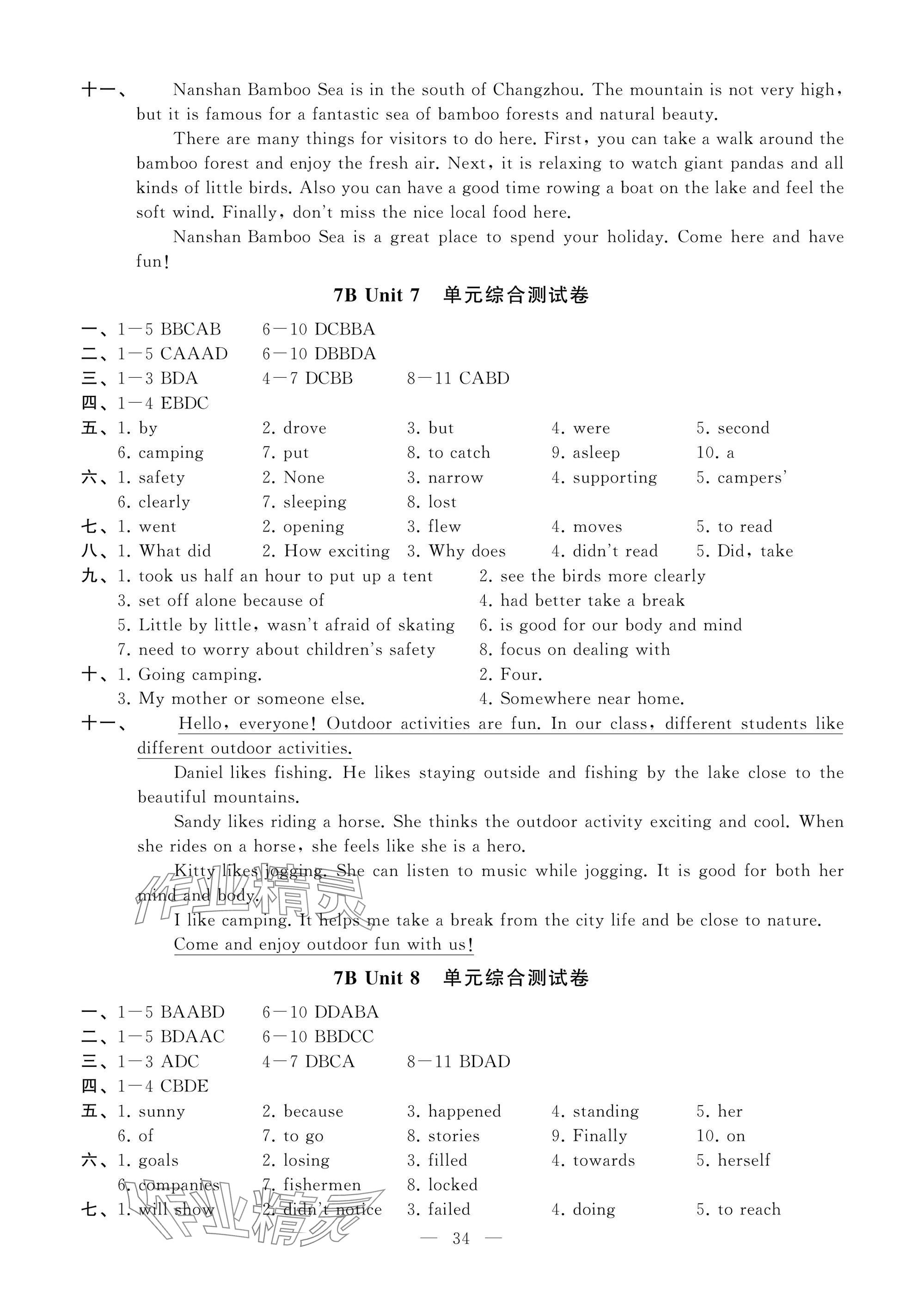 2026年创新优化学案七年级英语下册译林版参考答案第34页
