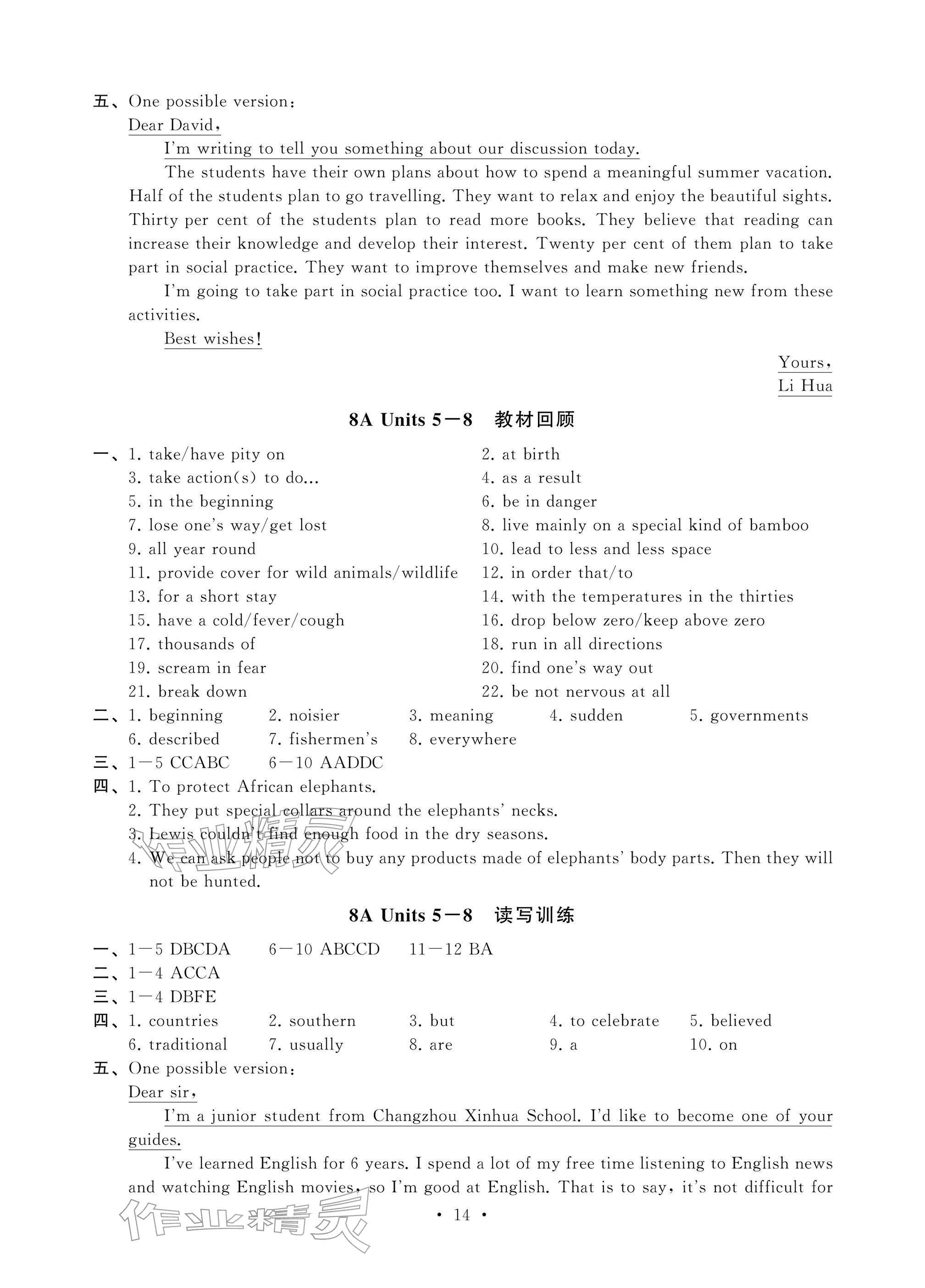 2026年创新优化学案九年级英语下册译林版参考答案第14页