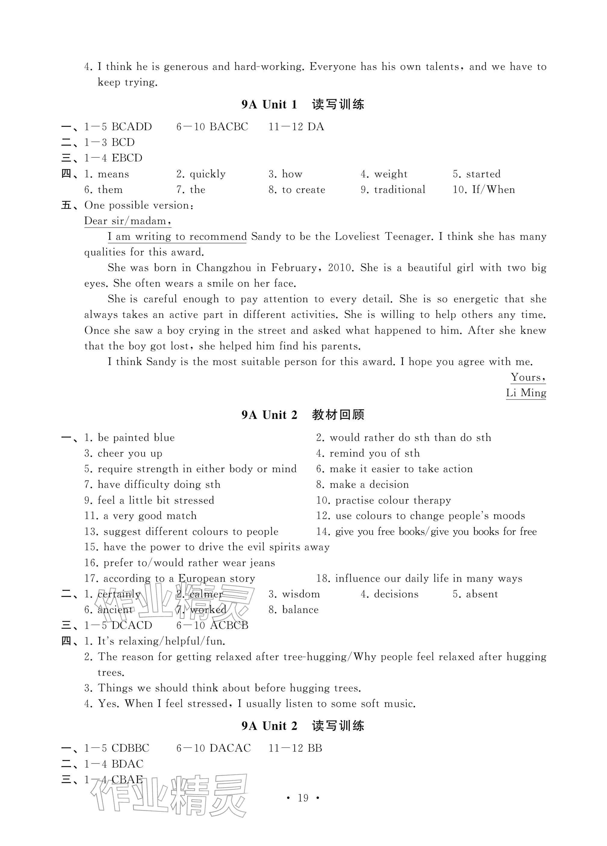 2026年创新优化学案九年级英语下册译林版参考答案第19页