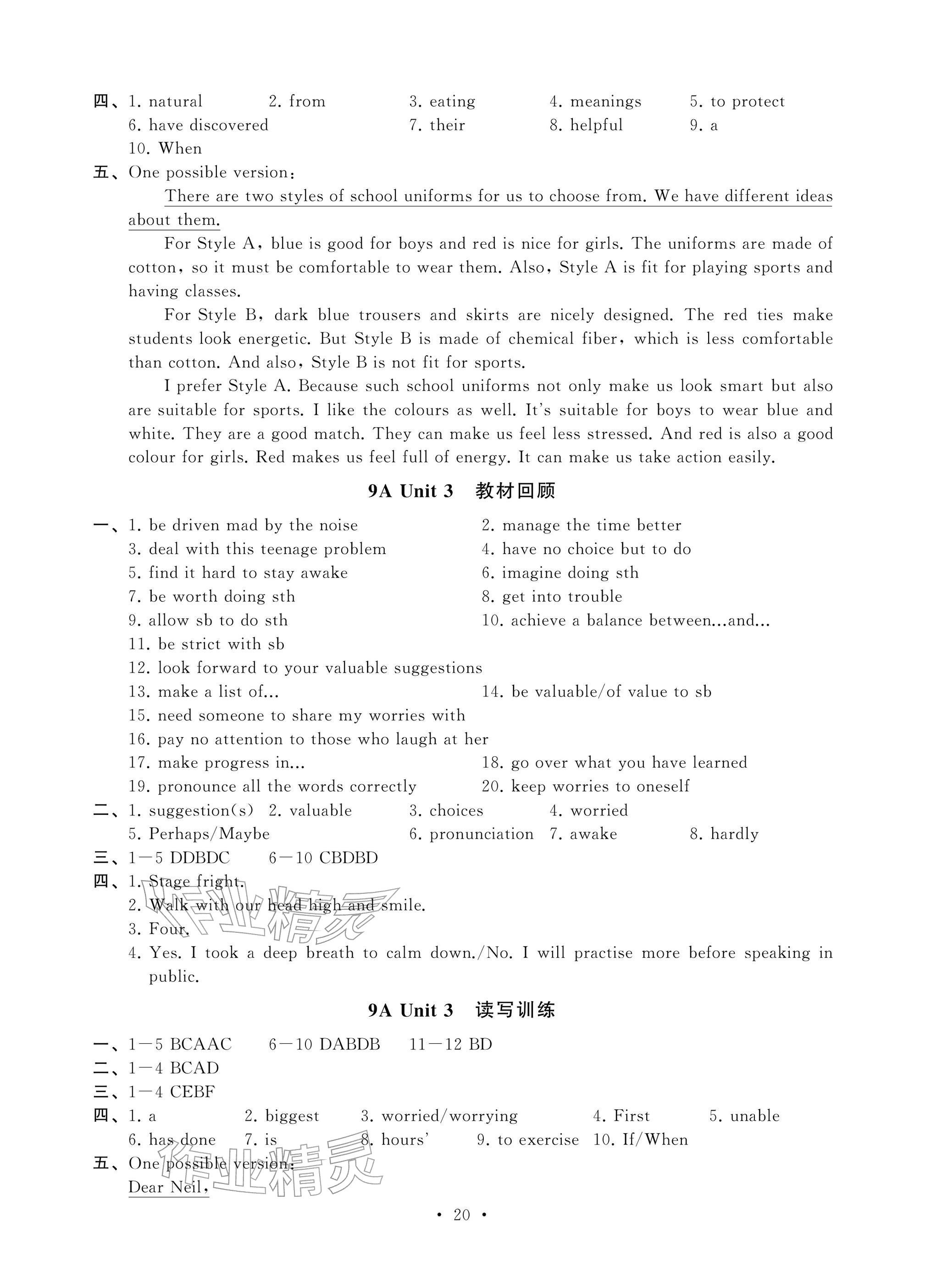 2026年创新优化学案九年级英语下册译林版参考答案第20页