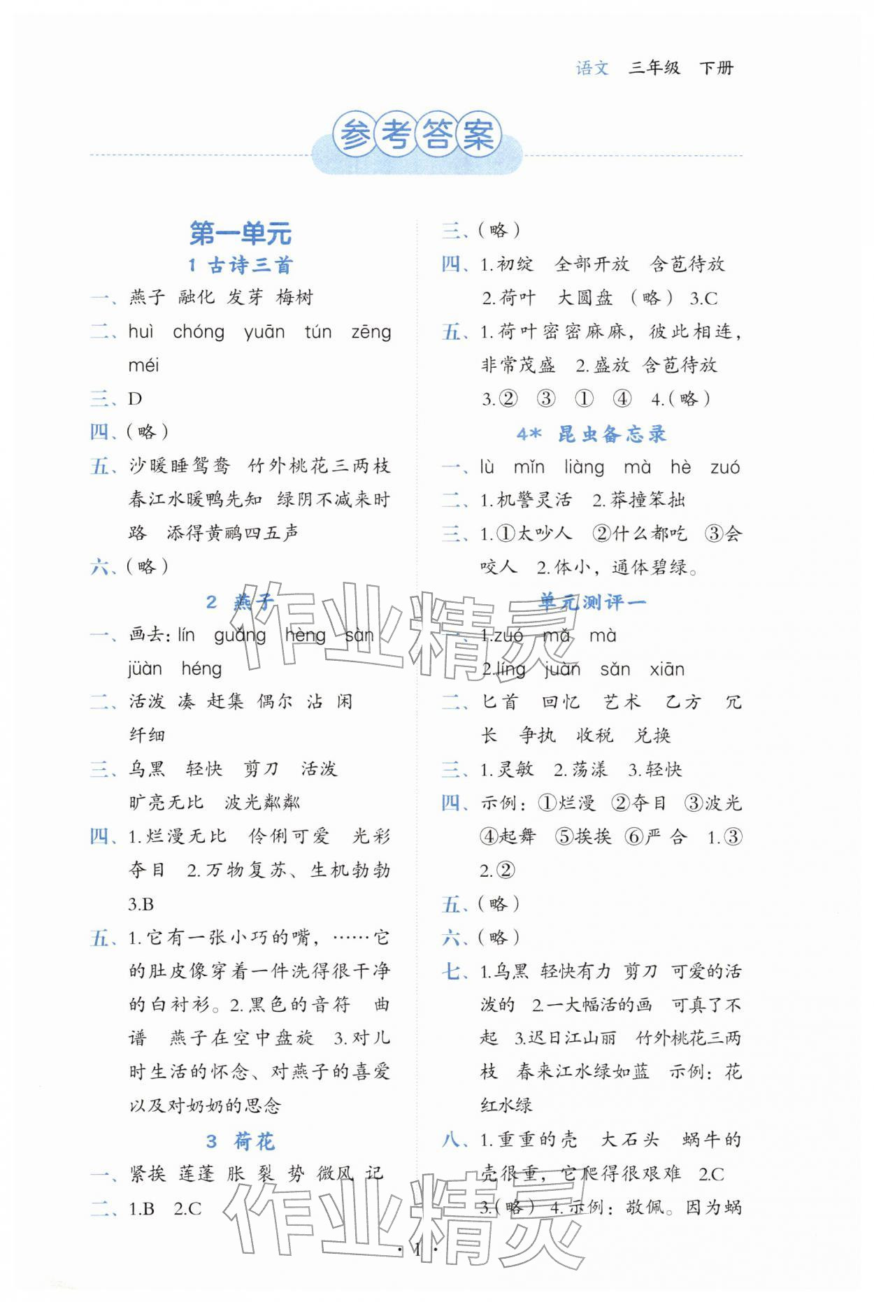 2026年人教金学典同步解析与测评三年级语文下册人教版第1页