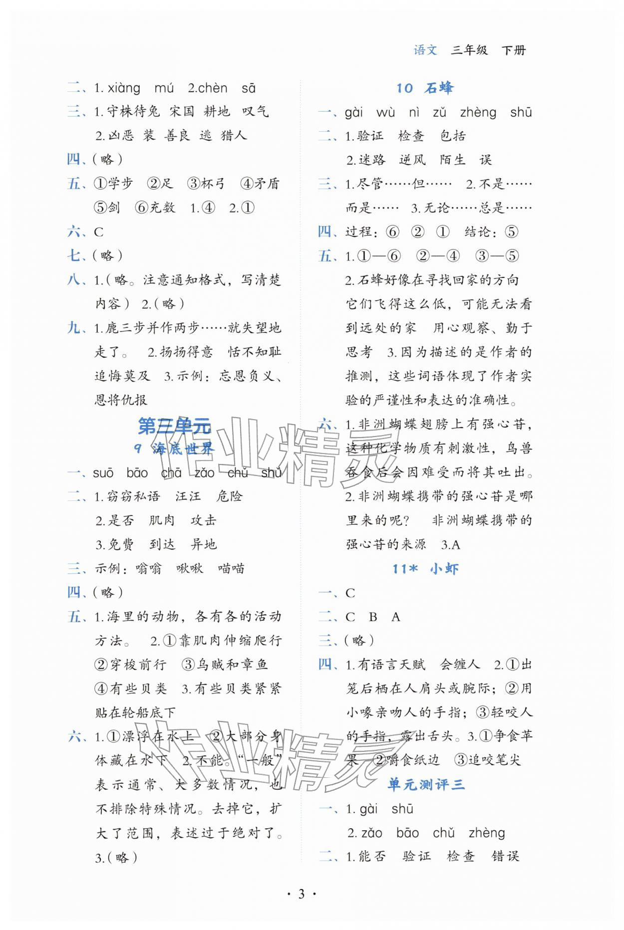 2026年人教金学典同步解析与测评三年级语文下册人教版第3页