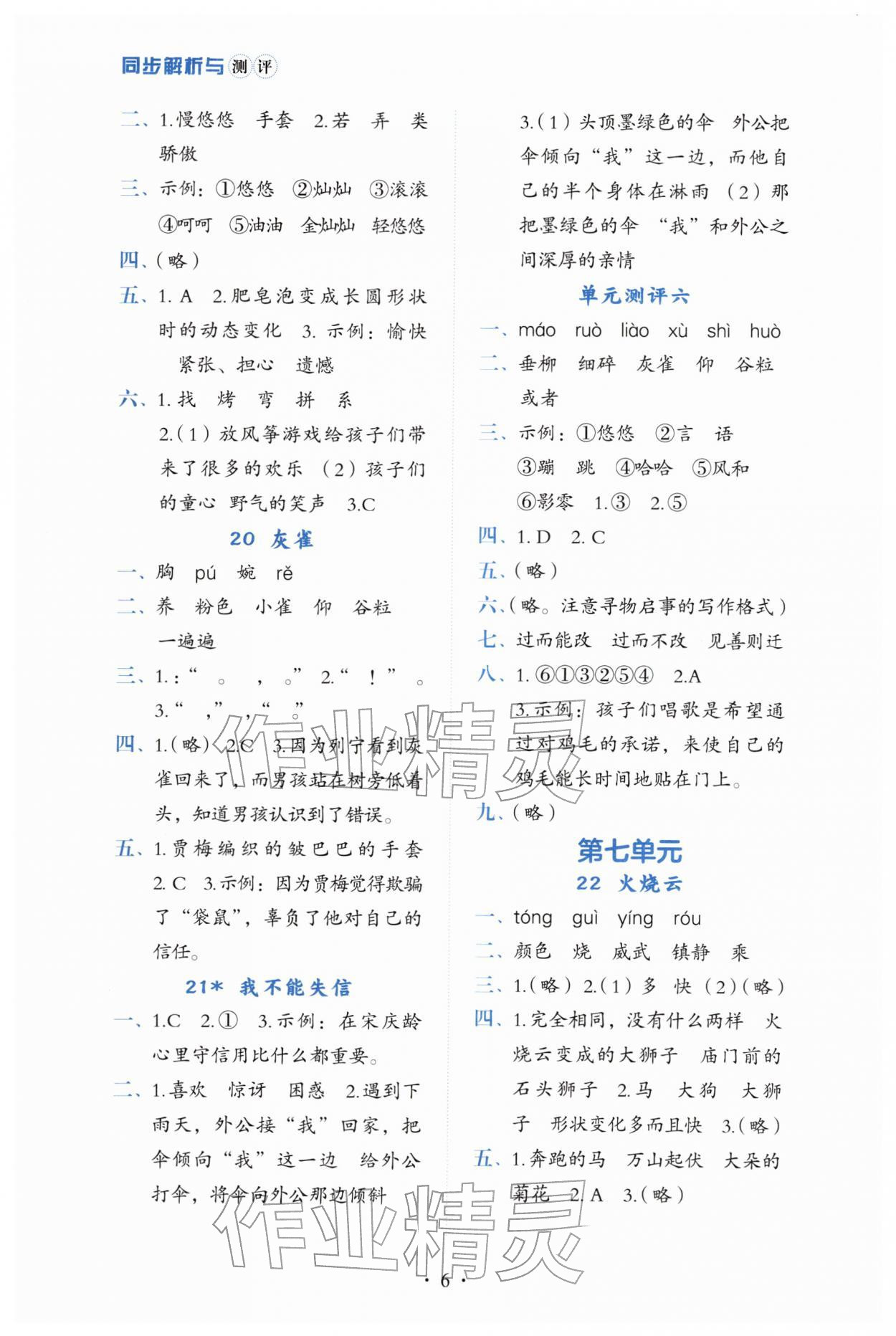 2026年人教金学典同步解析与测评三年级语文下册人教版第6页
