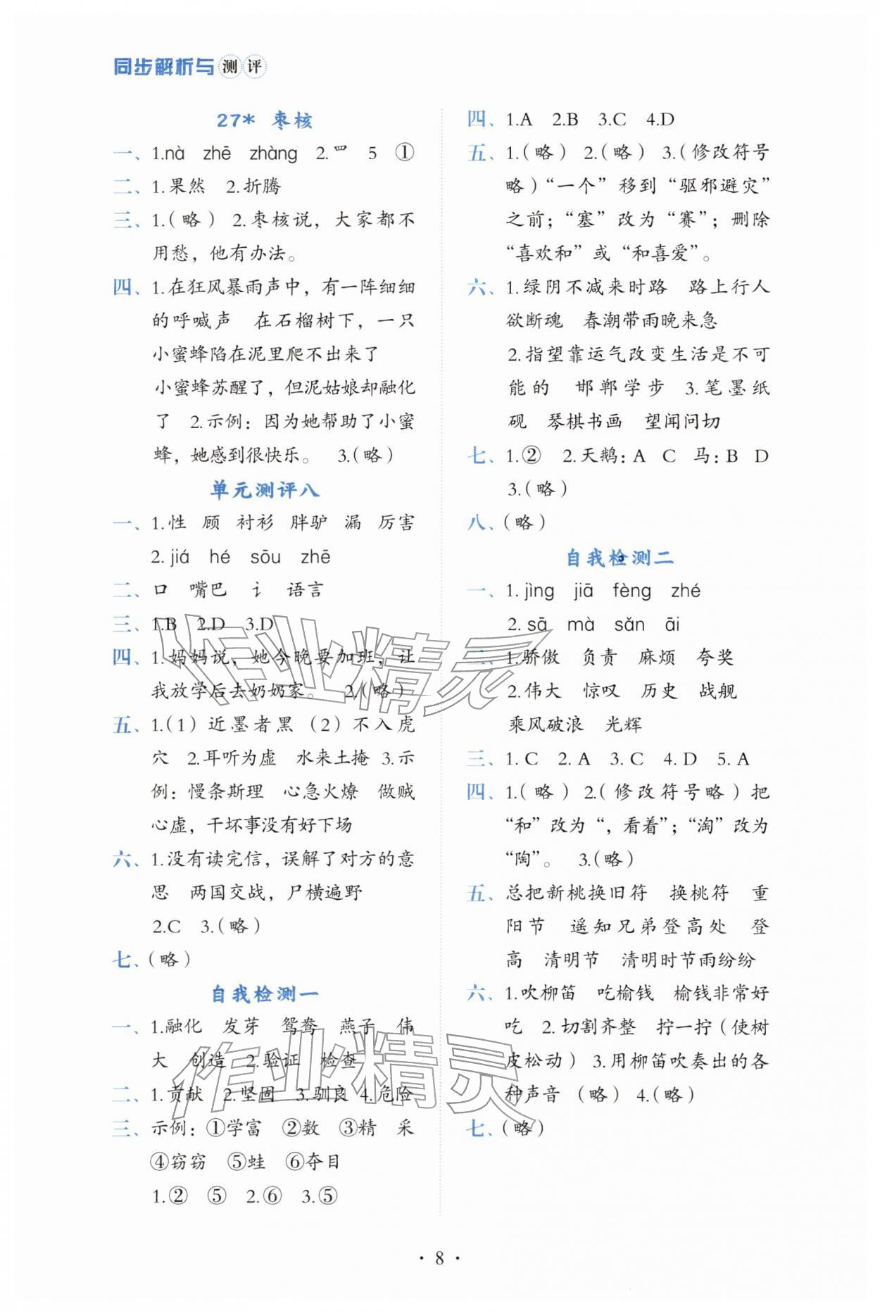 2026年人教金学典同步解析与测评三年级语文下册人教版第8页