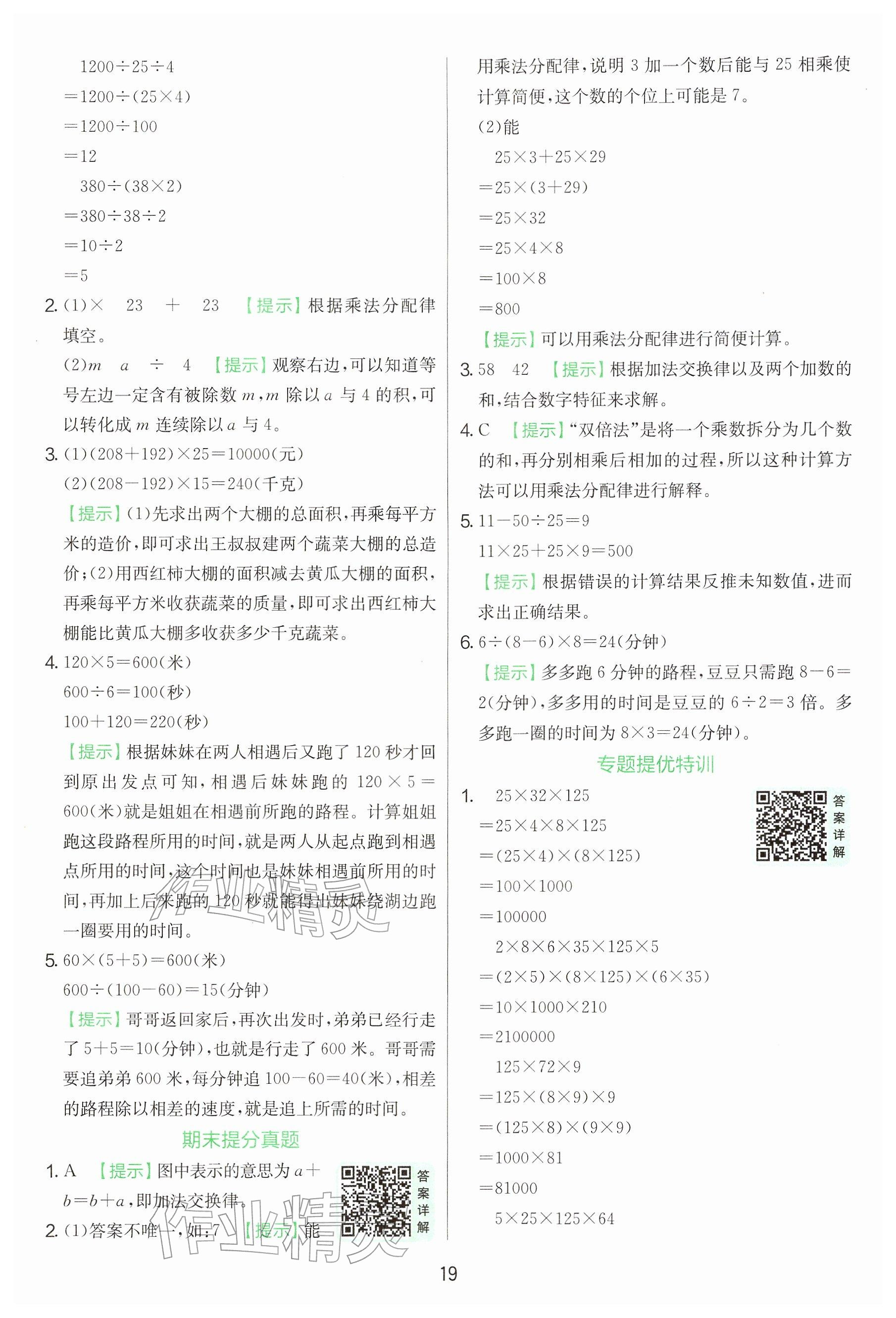 2026年实验班提优训练四年级数学下册苏教版第19页