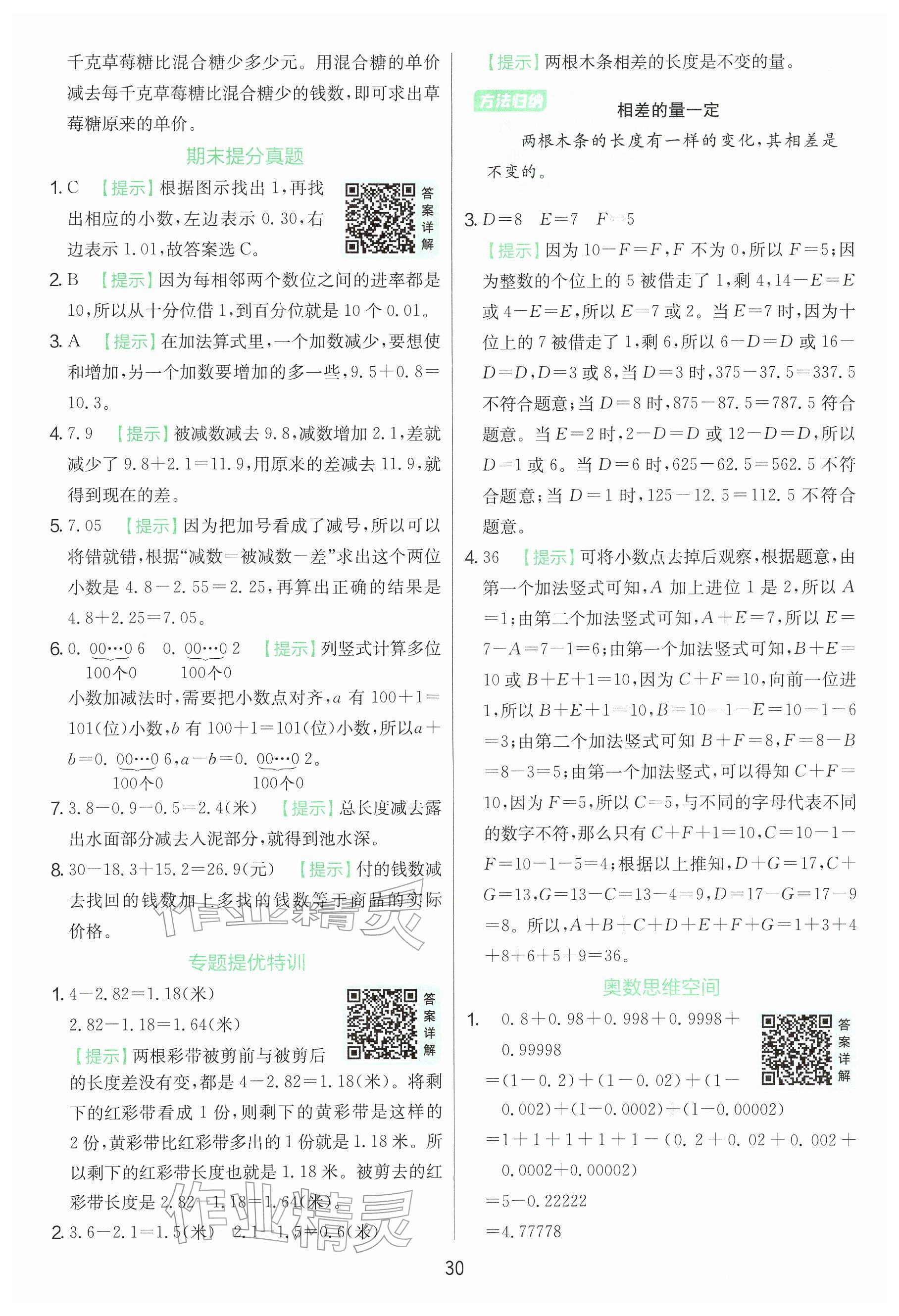 2026年实验班提优训练四年级数学下册苏教版第30页