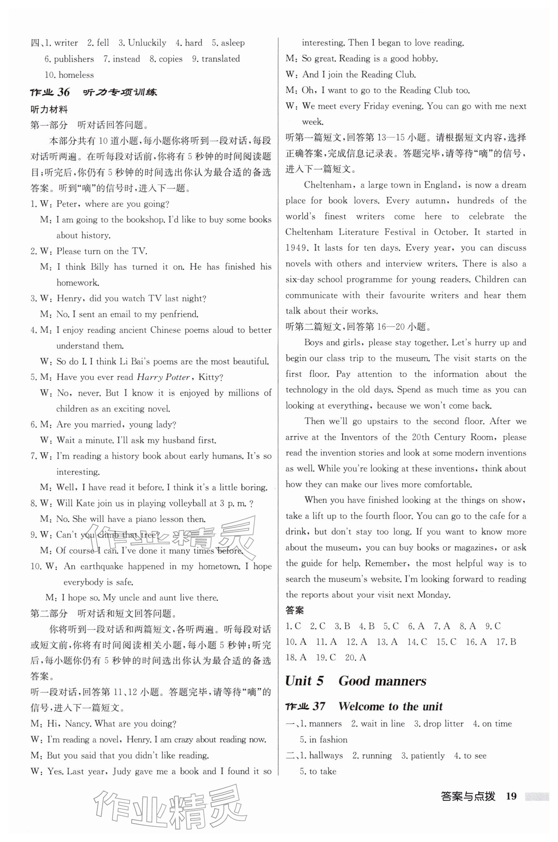 2026年启东中学作业本八年级英语下册译林版连云港专版参考答案第19页