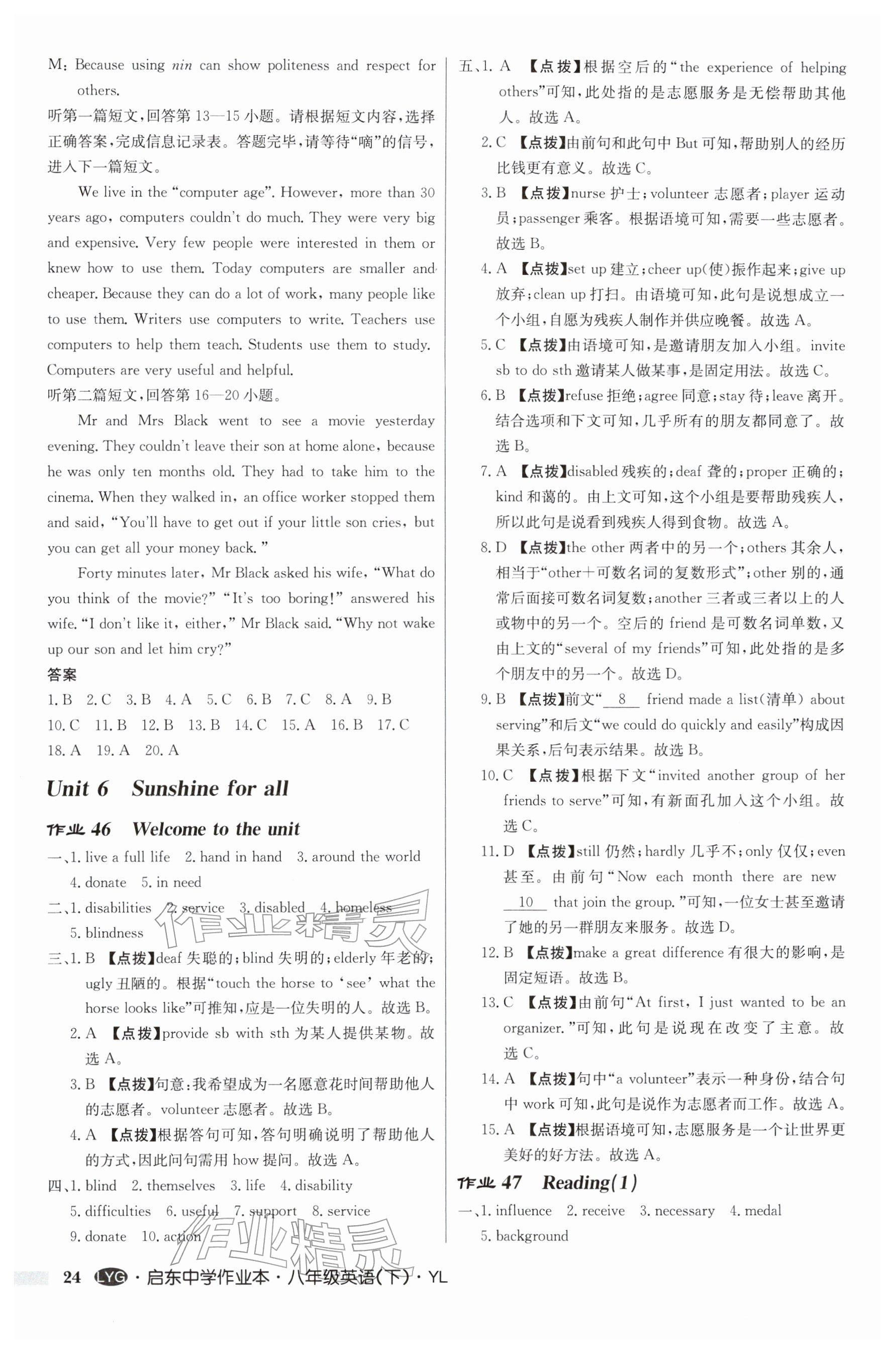 2026年启东中学作业本八年级英语下册译林版连云港专版参考答案第24页