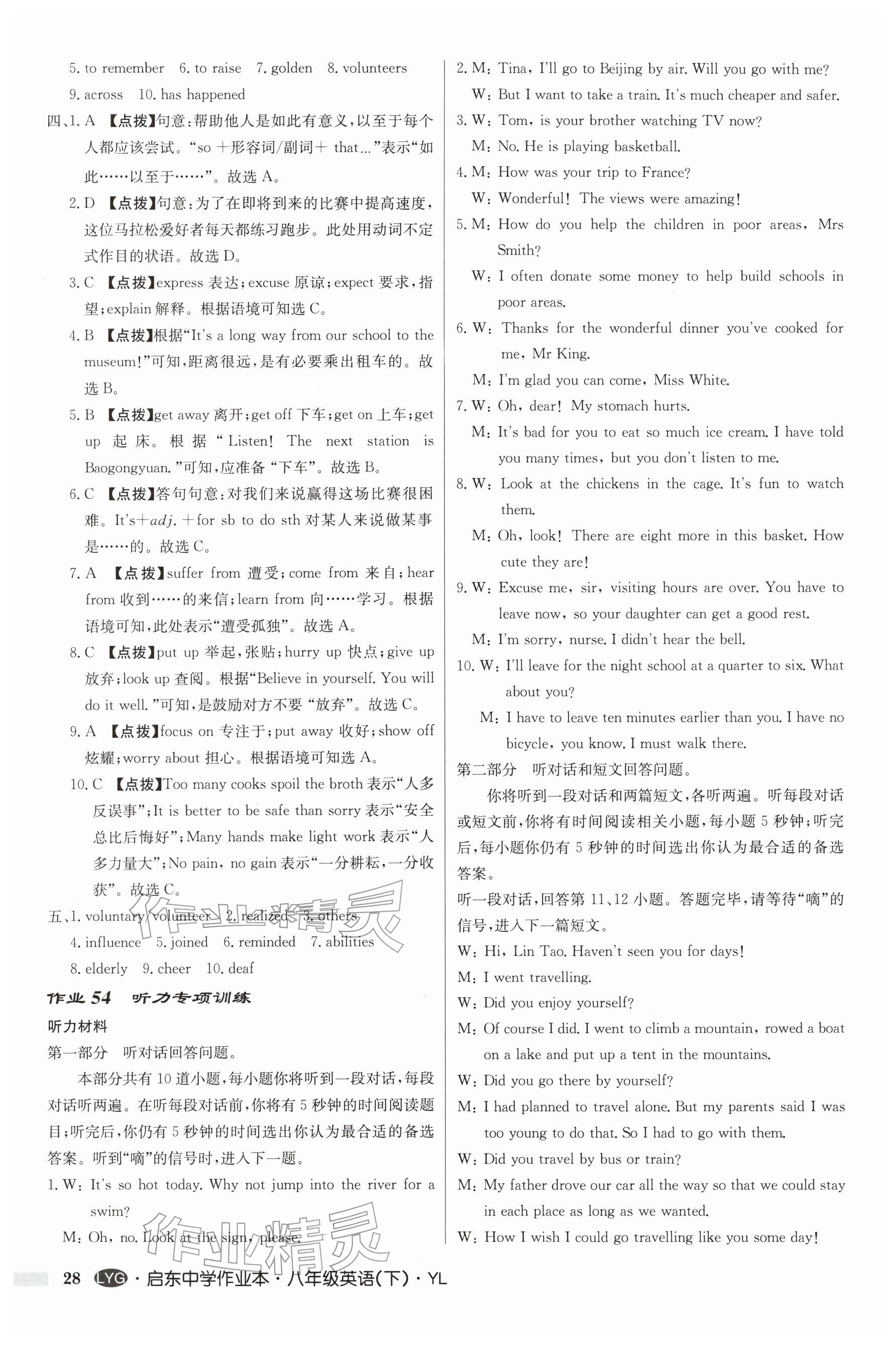 2026年启东中学作业本八年级英语下册译林版连云港专版参考答案第28页