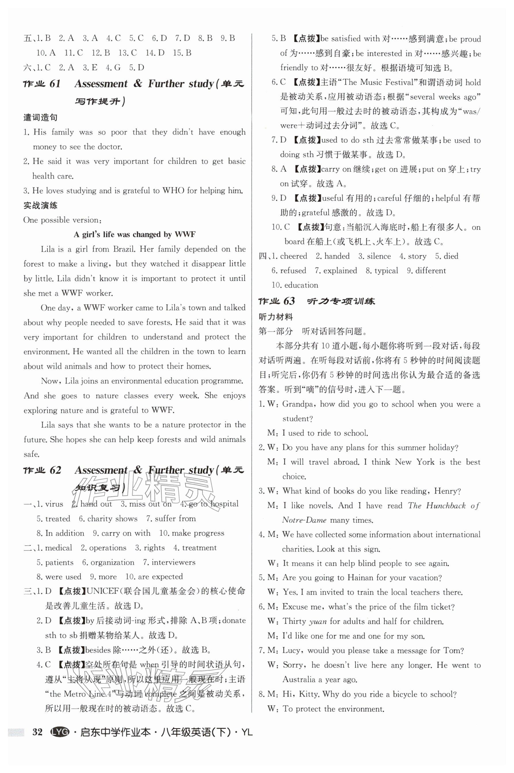 2026年启东中学作业本八年级英语下册译林版连云港专版参考答案第32页