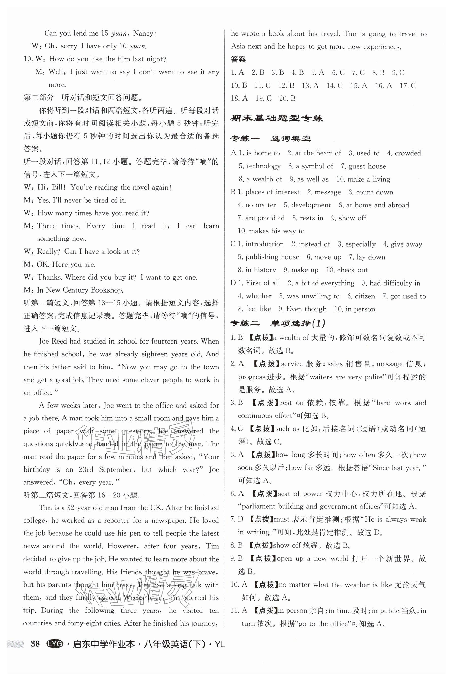 2026年启东中学作业本八年级英语下册译林版连云港专版参考答案第38页
