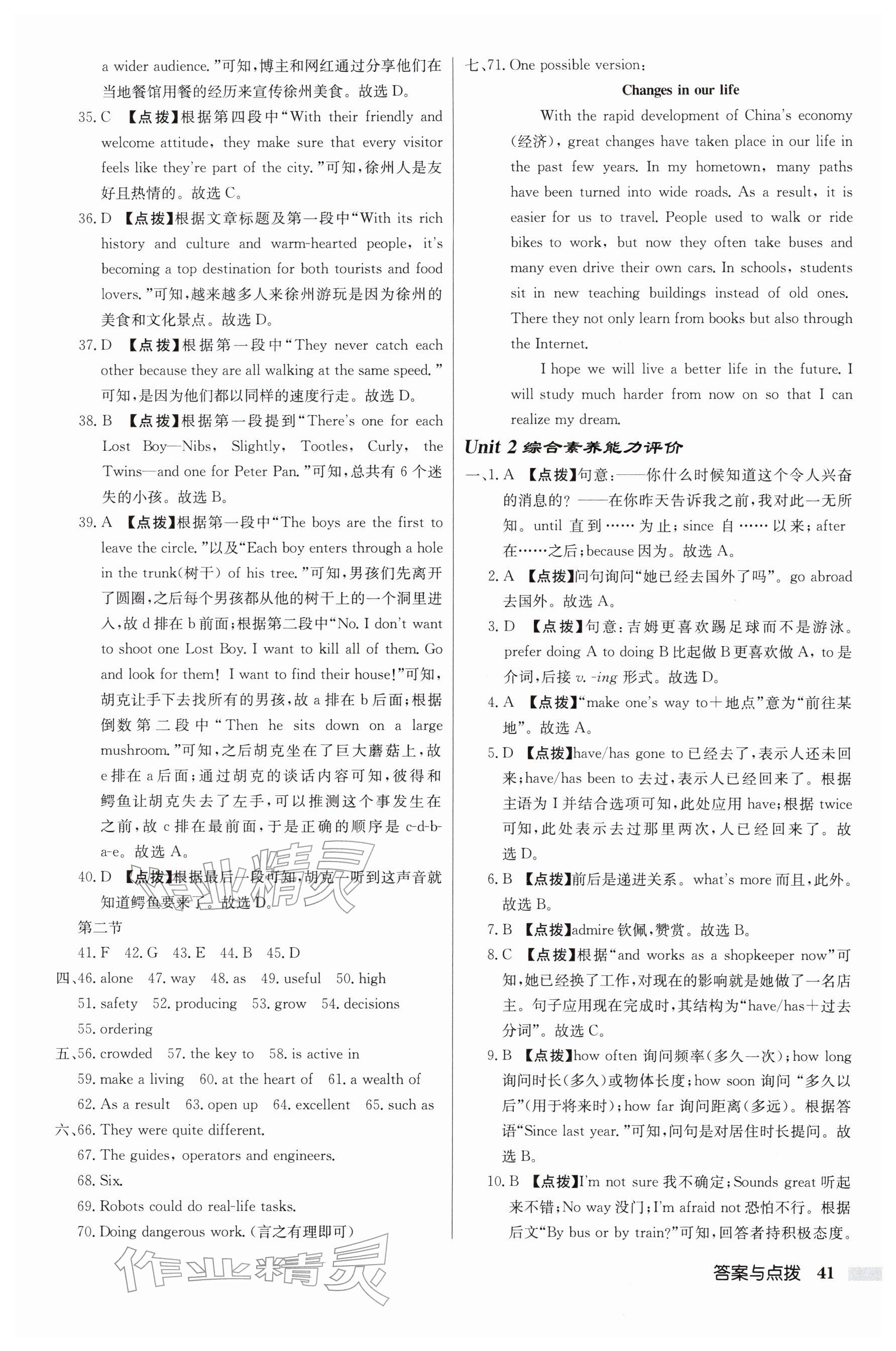 2026年启东中学作业本八年级英语下册译林版连云港专版参考答案第41页