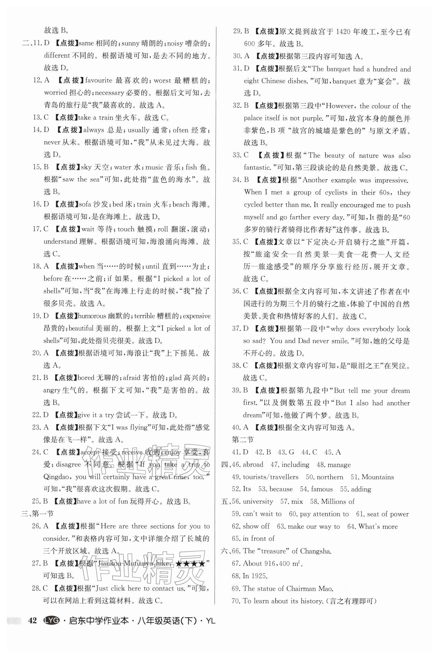 2026年启东中学作业本八年级英语下册译林版连云港专版参考答案第42页