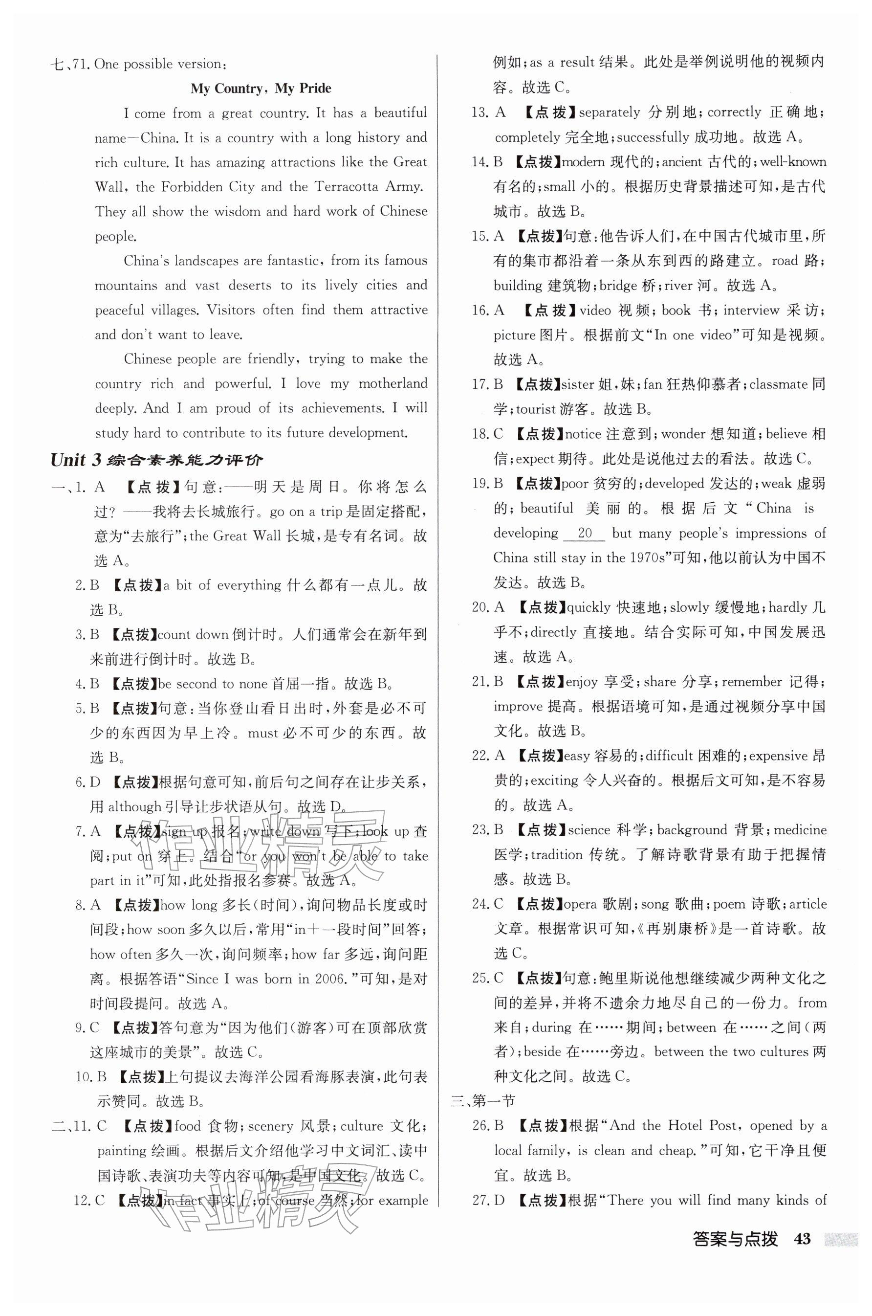 2026年启东中学作业本八年级英语下册译林版连云港专版参考答案第43页