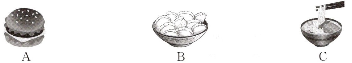 A. Noodles. B. Rice. C. Chicken.