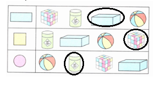 2. 用哪些物体可以画出左边的图形?圈一圈。