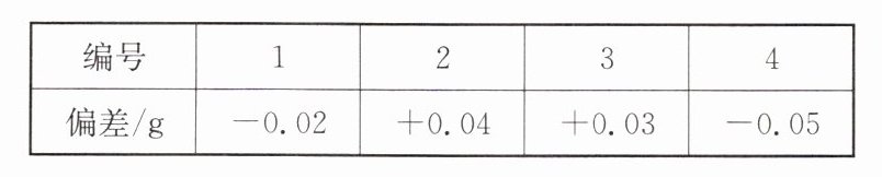 8. 比赛用的乒乓球对质量有严格的规定,但实际生产的乒乓球的质量可能有一些偏差. 请你根据下表中的检验记录(“+”表示超出标准质量,“-”表示不足标准质量),判断最接近标准质量的乒乓球的编号为 (