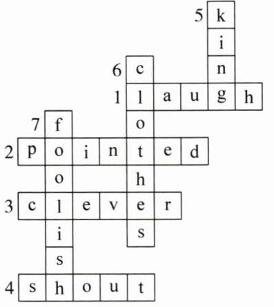 1. laugh 2. pointed 3. clever 4. shout 5. king 6. clothes 7. foolish