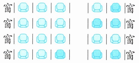 5. 新情境 真实生活 下面是高铁座位的预售情况。图中一共有多少个座位?