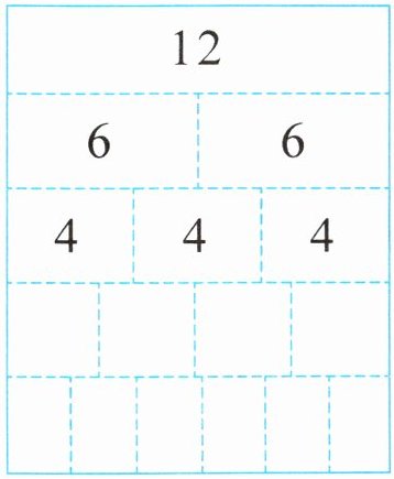 答案:(1)4 3 $12 ÷ 4 = 3$